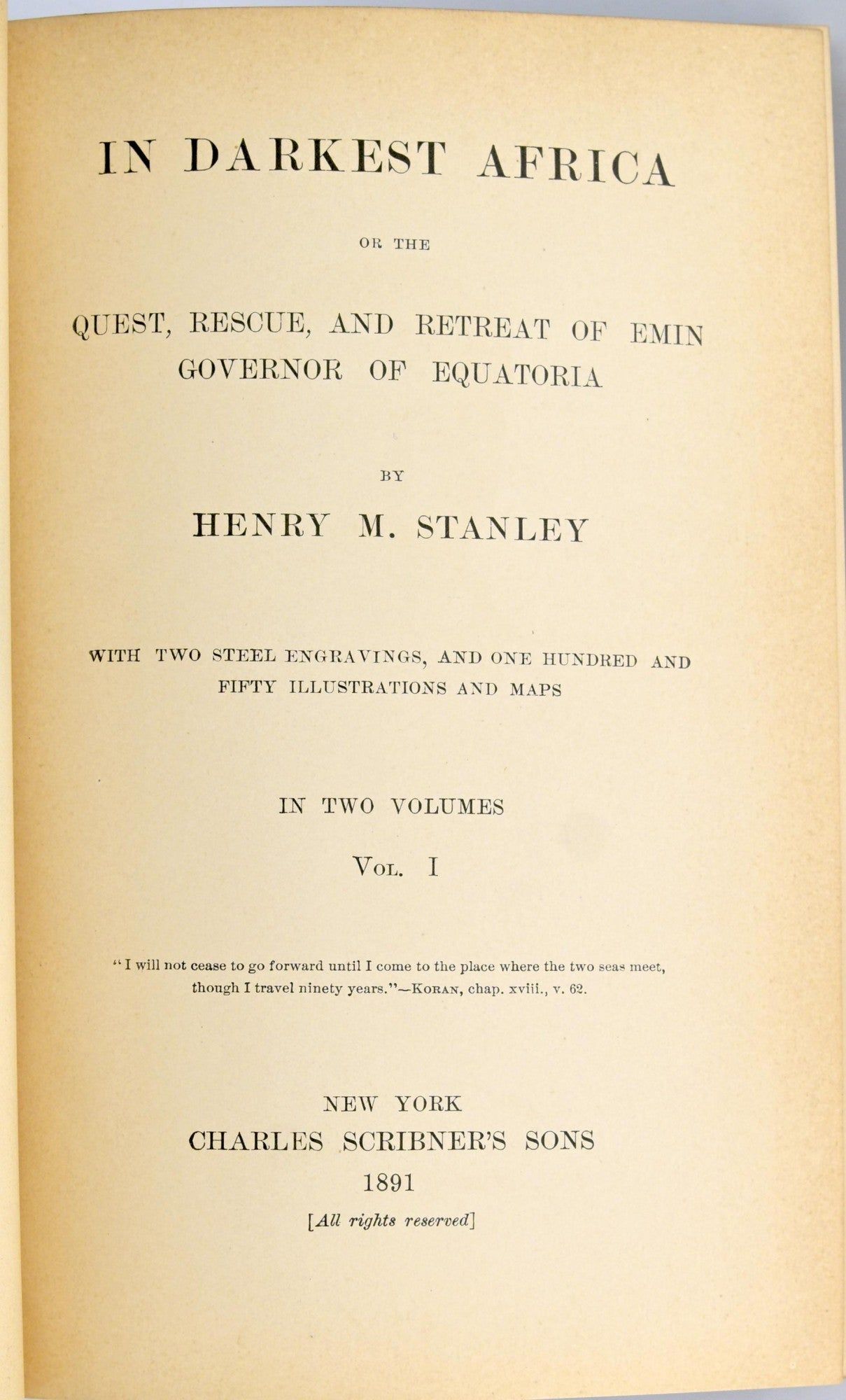 [TRAVEL] IN DARKEST AFRICA OR THE QUEST RESCUE AND RETREAT OF EMIN GOVERNOR OF EQUATORIA (2 VOLUMES)