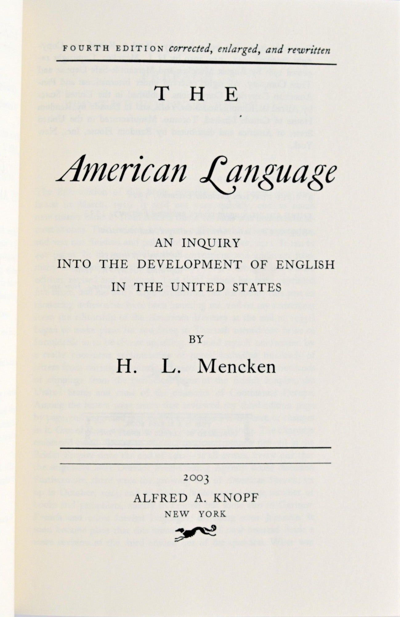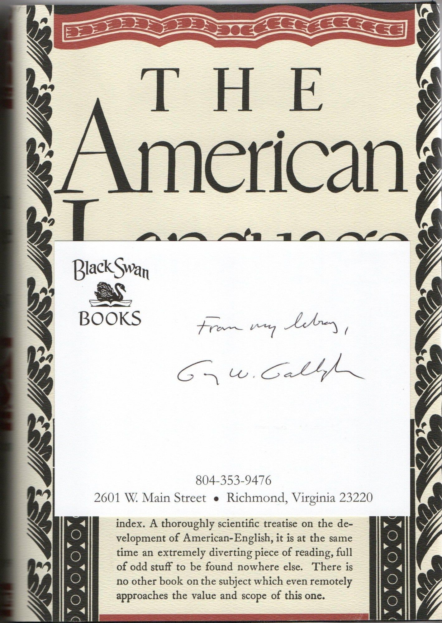 New York: Alfred A Knopf, 2003. Fourth Edition. Near Fine binding/Very Good dust jacket. Large 8vo; in the publisher’s black cloth binding; with decorations on the upper board and titling on the spine in gilt in dust jacket; xi, 769 pages, xxix, (2); small red mark on the front of the jacket.~~This book was acquired by us directly from Gary Gallagher’s person library with a card laid in reading “From my library - G W. Gallagher”~~A look into and defense of Americanisms in the English language. Near Fine binding / Very Good dust jacket.