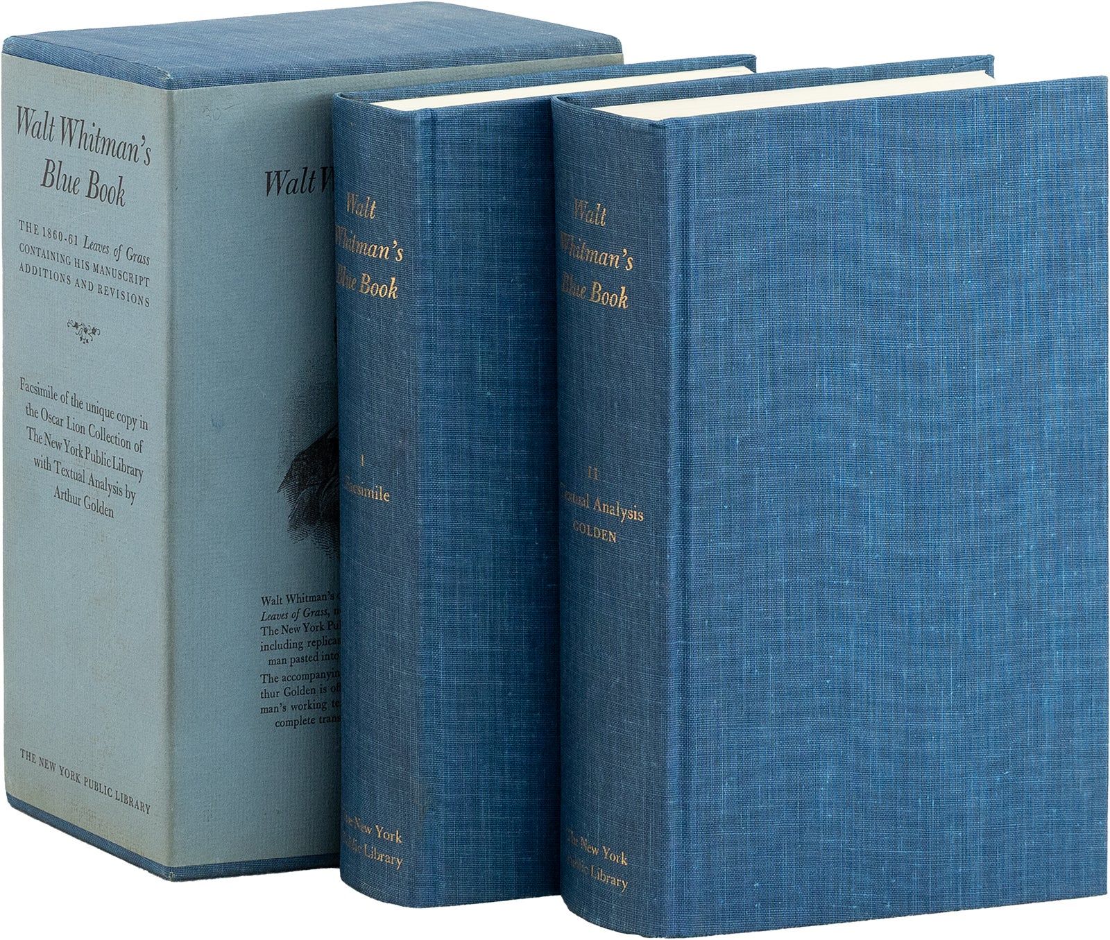 Walt Whitman's Blue Book: The 1860-1861 Leaves of Grass Containing His Manuscript Additions and Revisions (In Two Volumes: Volume 1: Facsimile of the Unique Copy in the Oscar Lion Collection of The New York Public Library. Volume II: Textual Analysis by Arthur Golden)