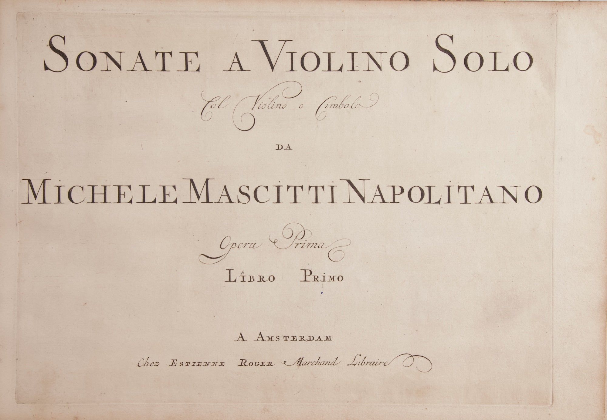 Mascitti, originally from Naples, settled in Paris in 1704, where all nine of his published collections were issued between that year and 1739. "[He] became a figurehead of Italian instrumental music in France and was regarded as the peer of Corelli [who had been his teacher in Rome] and Albinoni. .. Mascitti enjoyed enormous popularity with the French public." TNG Vol. 11, p. 746.