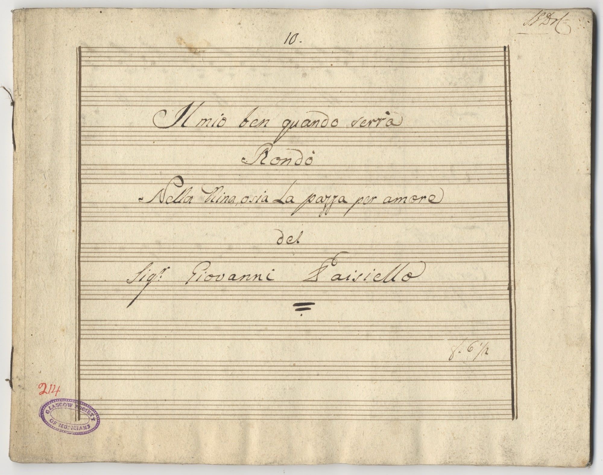 Il mio ben quando serrà Rondò Nella Nina, o sia la pazza per amore ... f. 6 1/2. [Copyist manuscript full score]