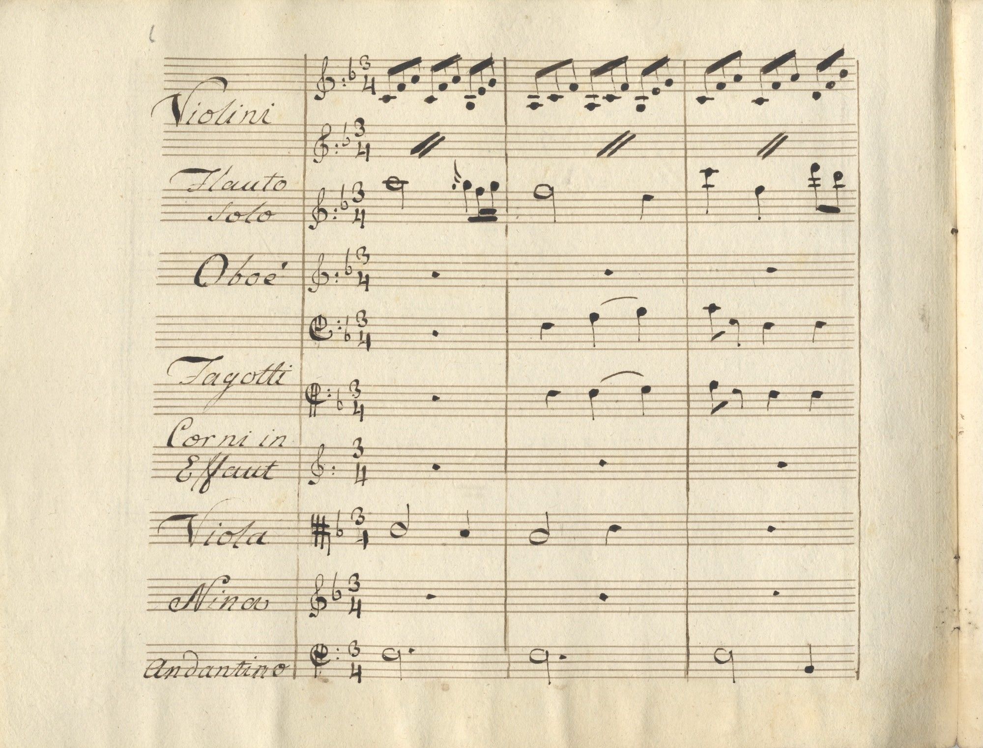 Scored for soprano, accompanied by violins, solo flute, oboes, bassoons, horns, violas, and basses.