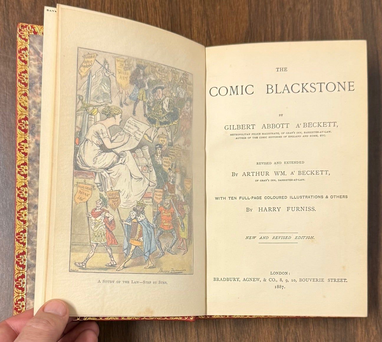 London: Bradbury, Agnew, & Co, 1887. Reprint. hardcover. fine. Harry Furniss. Revised and extended by Arthur Wm. A'Beckett. Illustrated with 10 full-page colored plates and numerous in-text drawings by Harry Furniss. xxviii, 324 pages. 8vo, beautifully bound by Bayntun in full red polished calf; ornate gilt-stamped spine with green and black leather labels; inner dentelles, all edges gilt. London: Bradbury, Agnew, & Co., 1887. A new and revised edition. A fine copy in a lovely binding, with a letter from the artist tipped in on preliminary page.