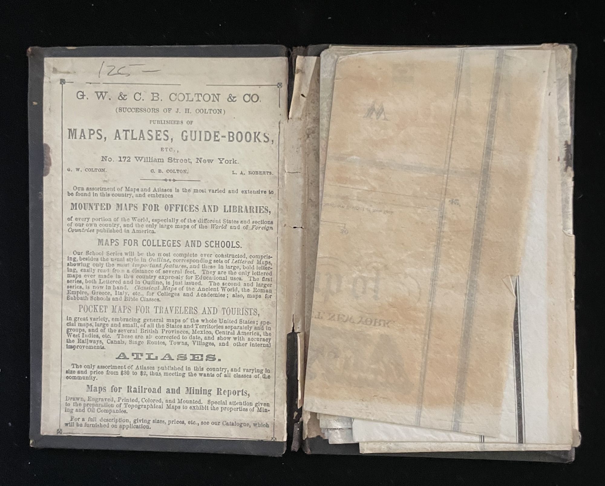 NY: G. W. and C. B. Colton & Co, 1869. 1st Edition. Hardcover. Good. Large fold-out map, printed in tissue-grade paper, and thus fragile, separating here and there along folds. Still pasted into cloth backed covers, brown cloth, gilt titles, where the cloth over spine has seen some loss but still holding. Sounds worse than it is. beaitifully detailed map, in color.