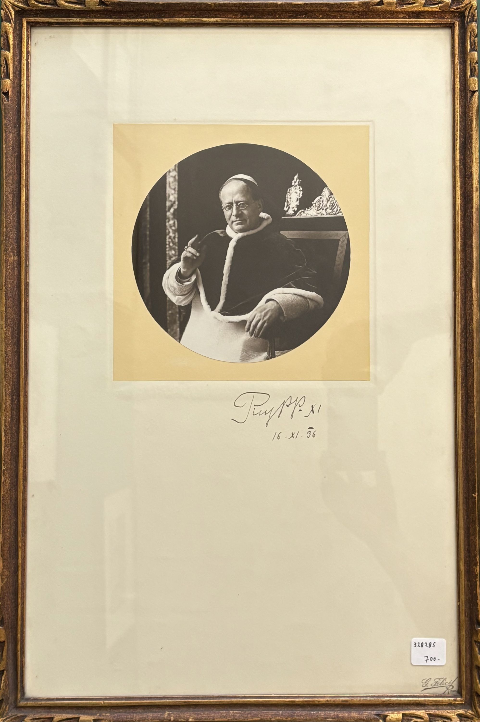 1936. framed. near fine. Signed framed circular photo of Pope Pius XI in gilt frame.