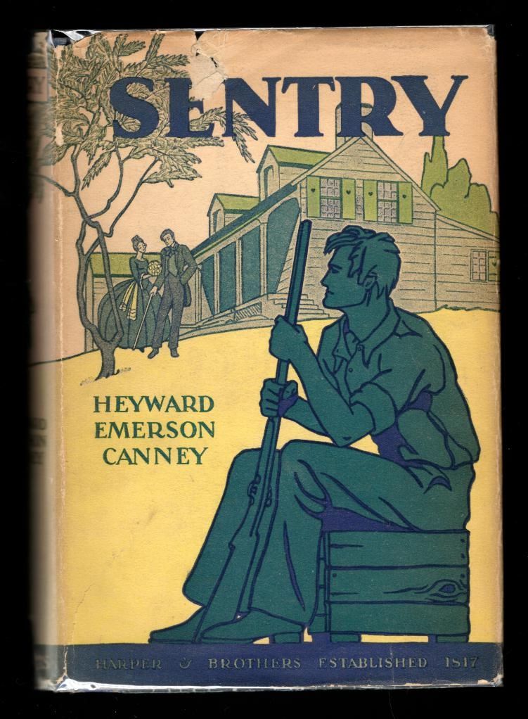 New York/London: Harper & Brothers. Very Good+ in Fair dj. 1928. 1st Edition (H-C). Hardcover. (price-clipped) [a good sound copy, a little fading to spine cloth, light shelfwear to bottom edges, tiny stain in front gutter with bleed-through on the first couple of pages, a couple of pages roughly opened with resulting slight raggedness to edges; the jacket is worn and age-toned, with a lengthwise crease in the spine (beginning to split), shallow chipping at the top of the spine, a small ragged tear with some associated surface-scarring at the top of the front panel, a small narrow chip at the base of the spine, and a one-inch diagonal closed tear at the lower left corner of the front panel]. Novel, "a sort of Enoch Arden romance of the Civil War," set in a New England village. The plot involves two men in love with the same woman; she marries the one, but really loves the other (who's a pacifist). The husband goes off to war, and after he's reported killed in battle, she and the first guy (who are already more or less shacked up -- "already too intimate for propriety," as a contemporary review delicately puts it) plan to marry -- but then hubby, not dead at all but having been confined to a Confederate prison camp -- returns home. Instead of booting the other guy out, however, he insists that his wife and the guy go on living together and notifies the man that "he'll kill him if he attempts to escape"; he takes up residence just across the road and assumes his "sentry" role (loaded musket at the ready), which (a) turns out to have been a plot of the husband's all along (based on some idea of his inflexible New England morality), and (b) takes a long, LONG time to play out: although this situation is put in place at the end of the Civil War in 1865, the novel doesn't actually reach its conclusion until 1927! One contemporary reviewer found it "the most original tale I have read in many years [and] one of the most arresting, [which] despite its extraordinary situations [is] wrought so deftly by the author that it seems natural and convincing." The Massachusetts-born author was reported at the time to be a private secretary in a Wall Street banking firm, a job he may well have held onto, given that this was his only published novel. (Another possible reason for its having been his solo effort: a contemporary news item reported that he suffered from "severe eye trouble," which made it necessary to dictate the greater part of the book to his wife.) .