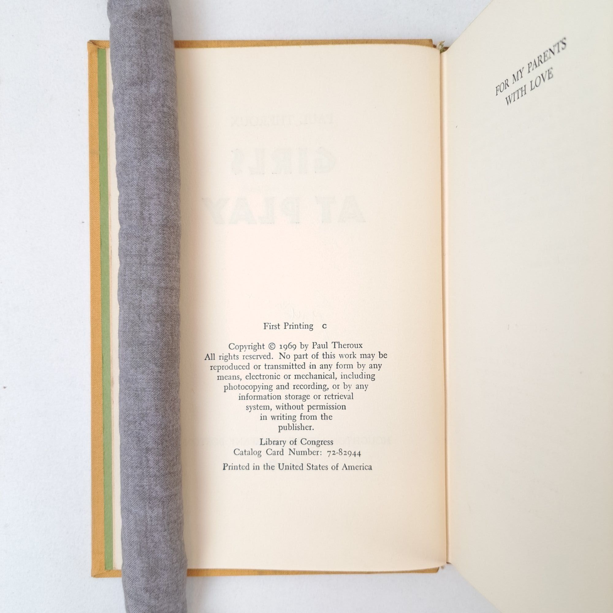 Boston, Massachusetts: Houghton Mifflin Company, 1969. First Edition, First Printing. Hardcover. Octavo, 209 pages. In Very Good minus condition, lacking issued dust jacket. Spine is light orange with lime green lettering. Boards have mild creasing along spine, joints, mild shelving wear along extremities, bumping and fraying to fore corners and moderate soiling; spine mildly cocked. Textblock edges have mild age-toning, head edge dyed light green and has mild scuffing and foxing; mild age-toning to endpapers. Signed flat by Paul Theroux on title page. Shelved Room C. 1398923. Special Collections.