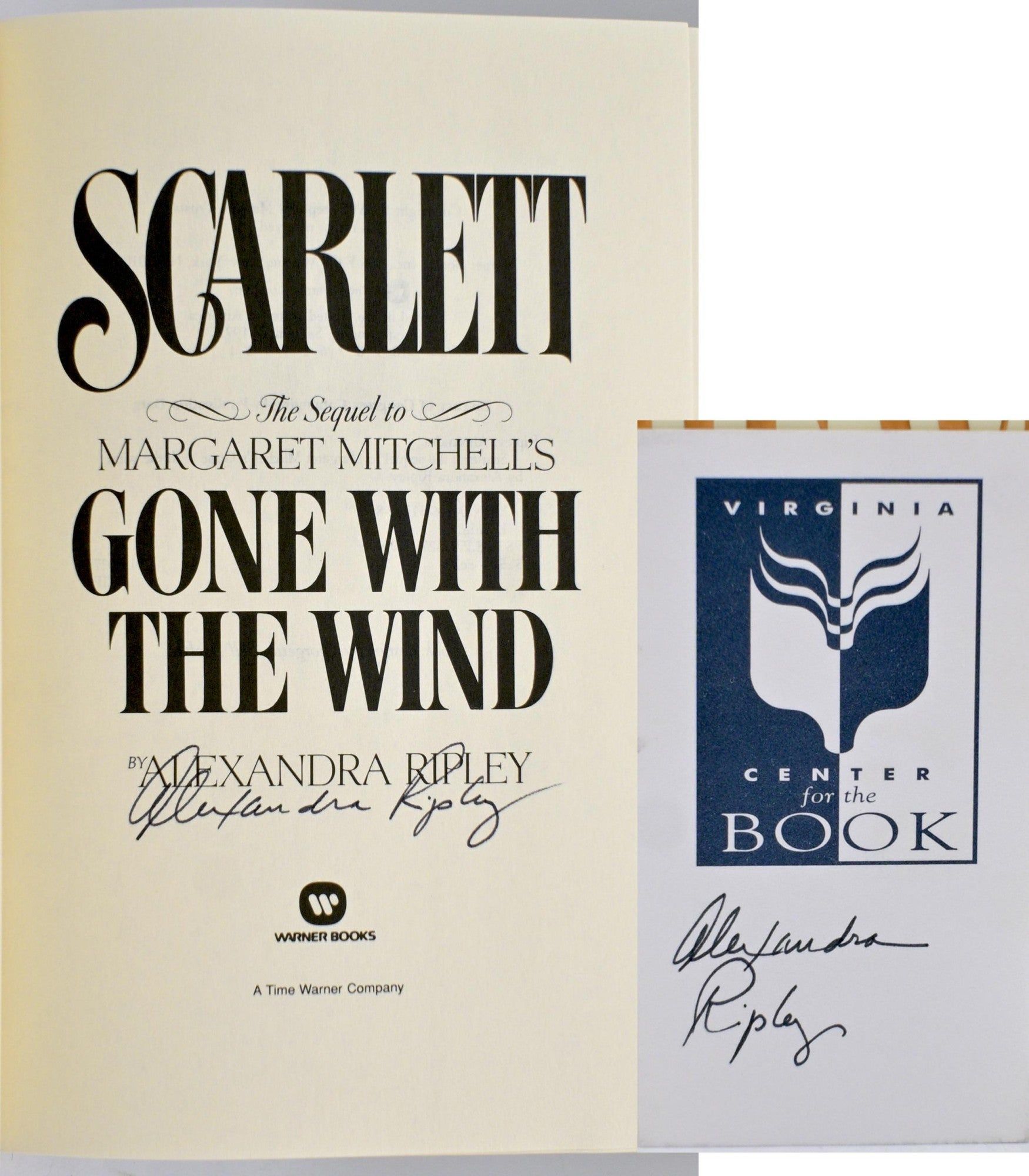 New York: Warner Books, 1991. First Edition. Hard Cover. Near Fine binding/Near Fine dust jacket. Signed. Large 8vo; in red cloth over paper covered boards; with titling on the spine in gilt; in an unclipped dust jacket; 823 pages; the top of the spine is a bit bumped.~~Signed by the author on the title page.~~With a Center for the Book Virginia book plate signed by Alexandra Ripley laid in.~~ From the front flap of the jacket “Four years in the writing , Scarlett:The Sequel to Margret Mitchell’s Gone With The Wind is the product of painstaking research, admiration and respect, and the fertile imagination of accomplished and best selling historical writer Alexandra Ripley”~~~~. Near Fine binding / Near Fine dust jacket.