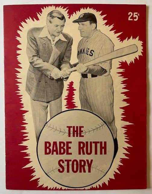 Allied Artists, 1948. Pictorial wrappers. Near Fine. A wonderful piece of baseball --and specifically Babe Ruth-- ephemera. The uncommon official booklet, issued just before the film's premiere in late July of 1948, of "The Babe Ruth Story", Hollywood's "semi-fictional biopic" of the great slugger, starring William Bendix as Babe Ruth. Ironically, the film was released just 3 weeks before Babe Ruth's death from throat cancer on August 16th, 1948. The booklet, crisp and clean in its stapled pictorial wrappers, has held up very well and is in superb condition. Bright and Near Fine, filled with dozens of black-and-white photos, many of Babe Ruth himself on the set of the film. The screenplay for the film was written by Bob Considine (who "co-wrote" the book on which the film was based) and George Callahan, the film was both produced and directed by Roy Del Ruth.