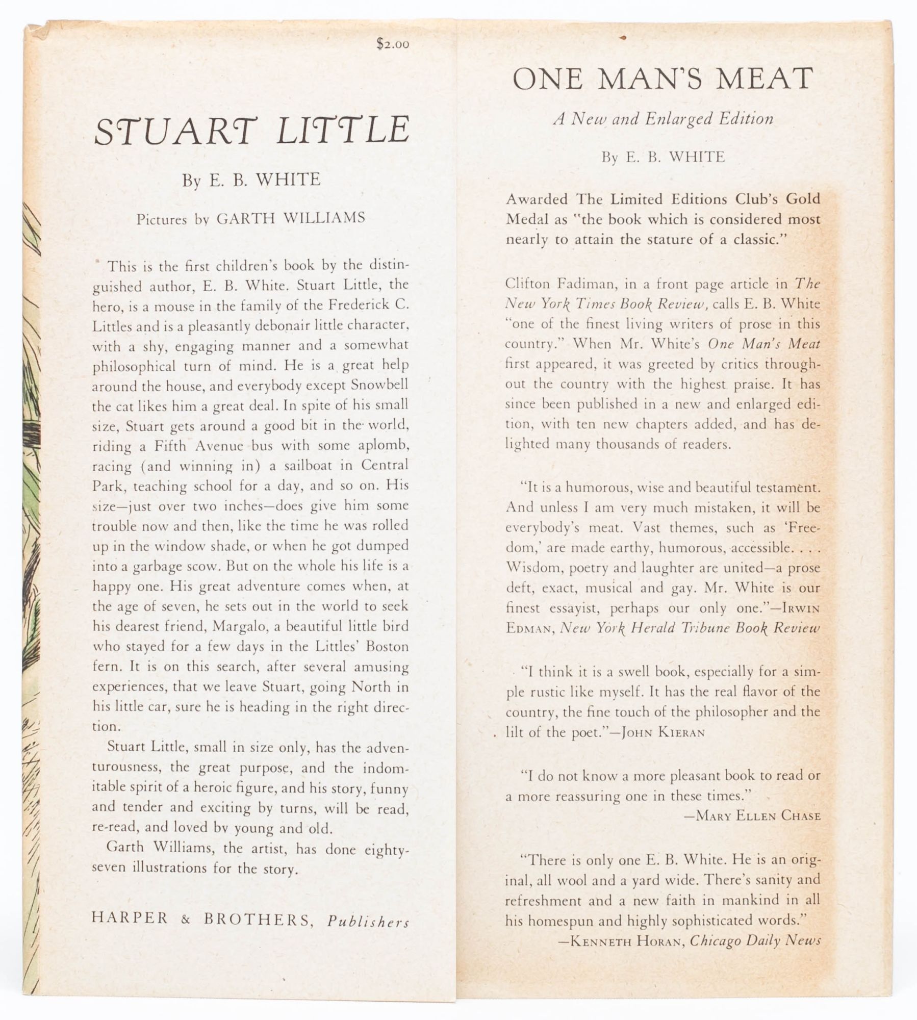 The first children's book by ecological writer E. B. White, it was praised at its release by Malcolm Cowley of The New York Times as "one of the best children's books published this year." Since then, it has become a classic, and it has inspired both film and television adaptations. The story of a talking mouse named Stuart who is born to the Little family, of New York City. From the start, Stuart stands out as different—just over two inches tall, he still thinks and behaves like a seven year old boy, and his parents begin feeling concern about where he will fit in the world. A story of bravery, embracing uniqueness, and developing friendships through kindness and acceptance, Stuart Little is a cornerstone children's book.