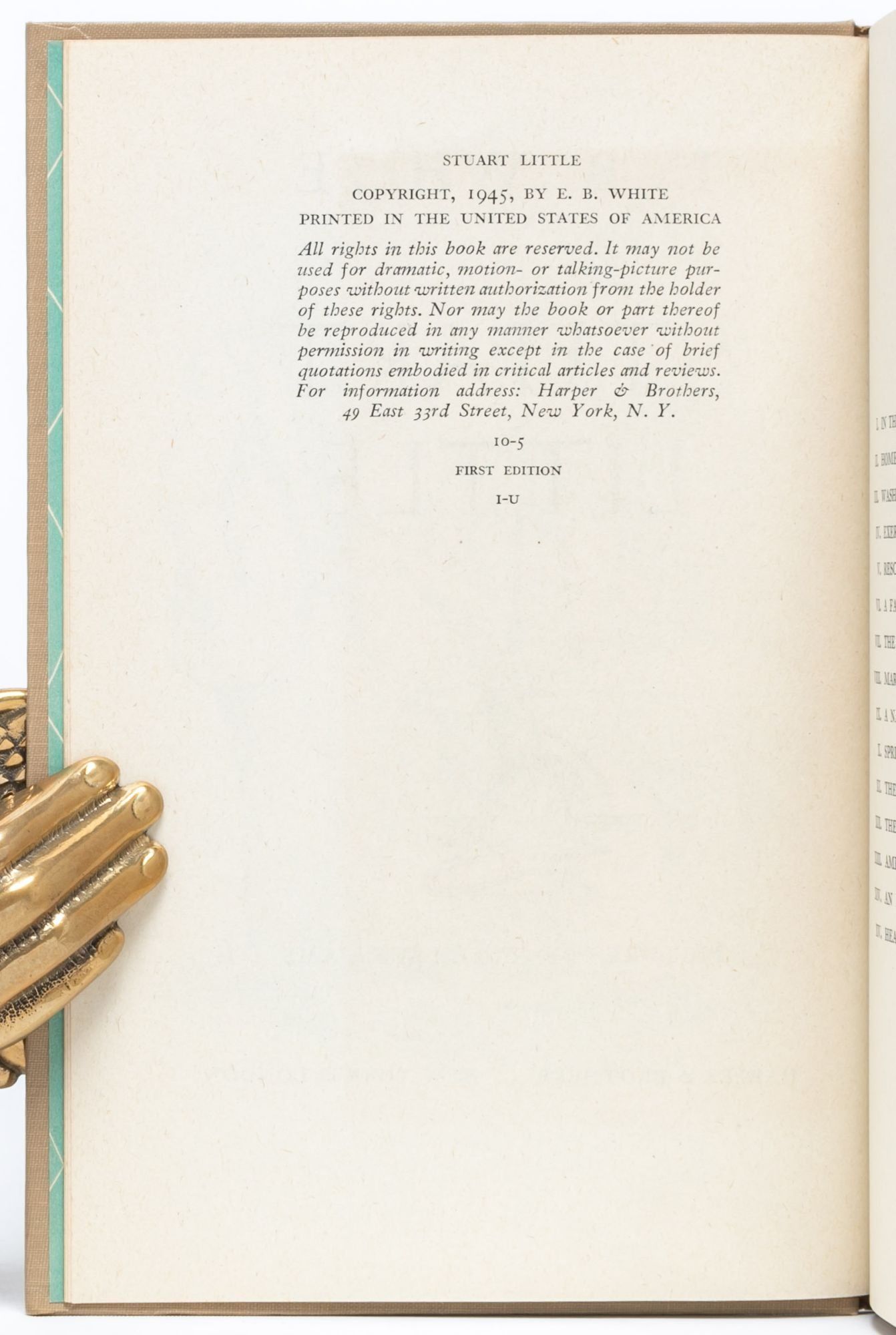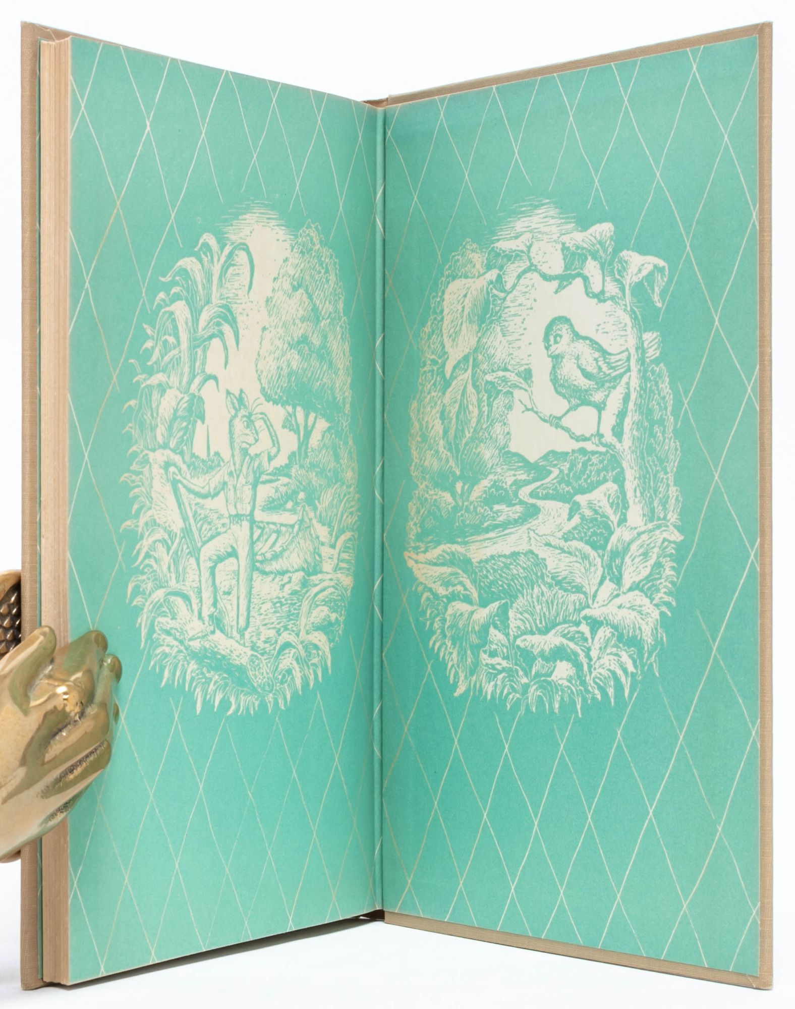 New York & London: Harper & Brothers, 1945. First edition. Fine/Near Fine. First edition (stated on copyright page with 10-5 and I-U). A Fine copy in Near Fine dust jacket. Octavo (8 x 5 1/4 inches; 202 x 134 mm.). viii, 131, [1 blank] pp. Five full-page line drawings (including frontispiece) and numerous line-drawings in the text. Publishers gray linen over boards, front cover and spine pictorially decorated in orange and green, pictorial endpapers printed in green. A clean and bright copy aside from some faint offsetting to title-page and frontispiece. In the unclipped first issue color pictorial dust jacket ($2.00 on front flap) with just a bit of darkening to spine and back flap and some chipping to crown.