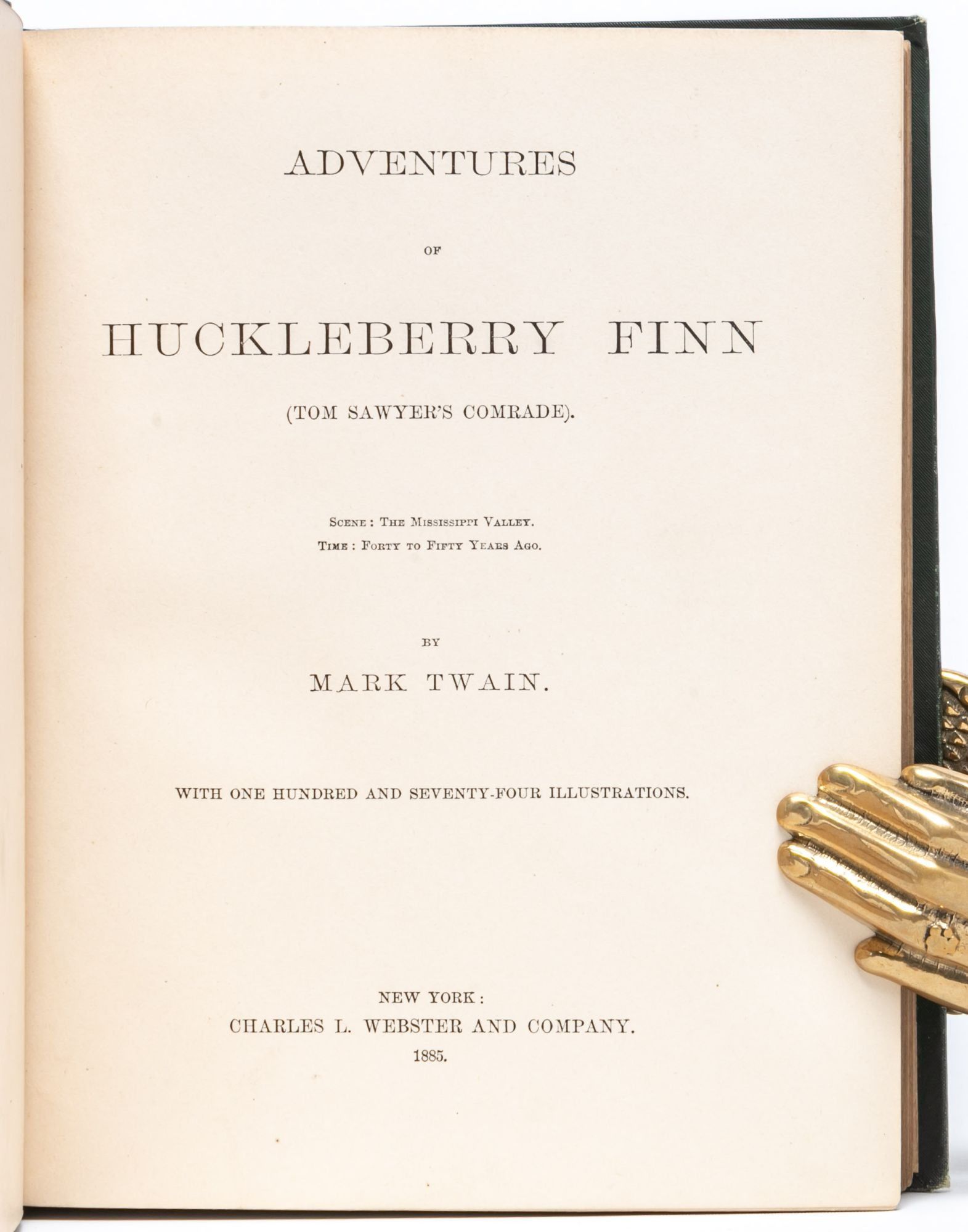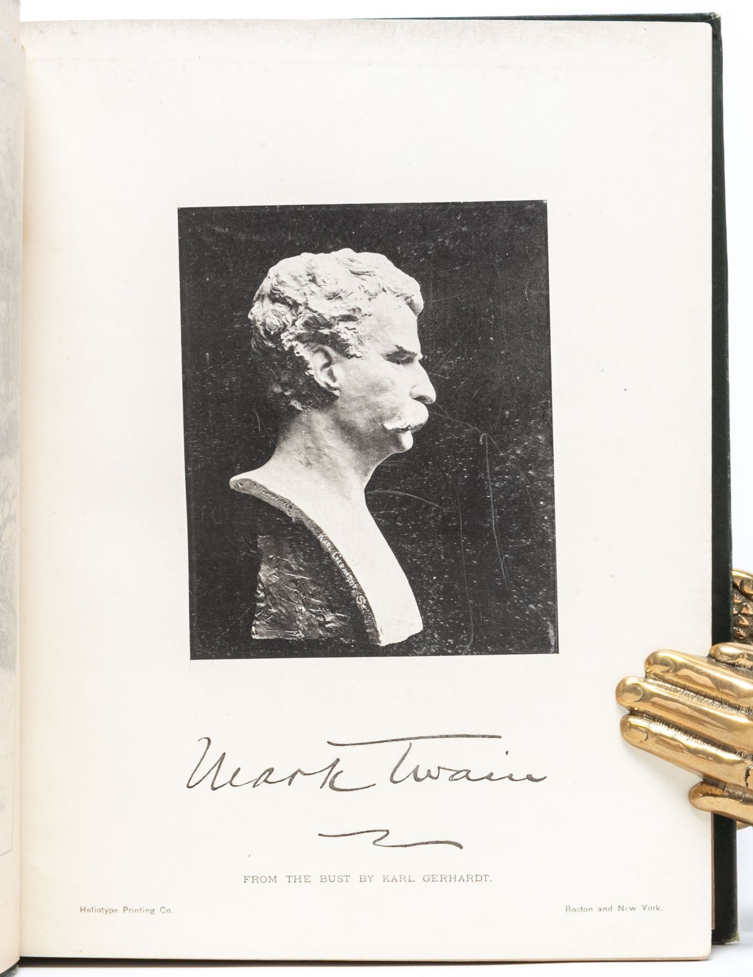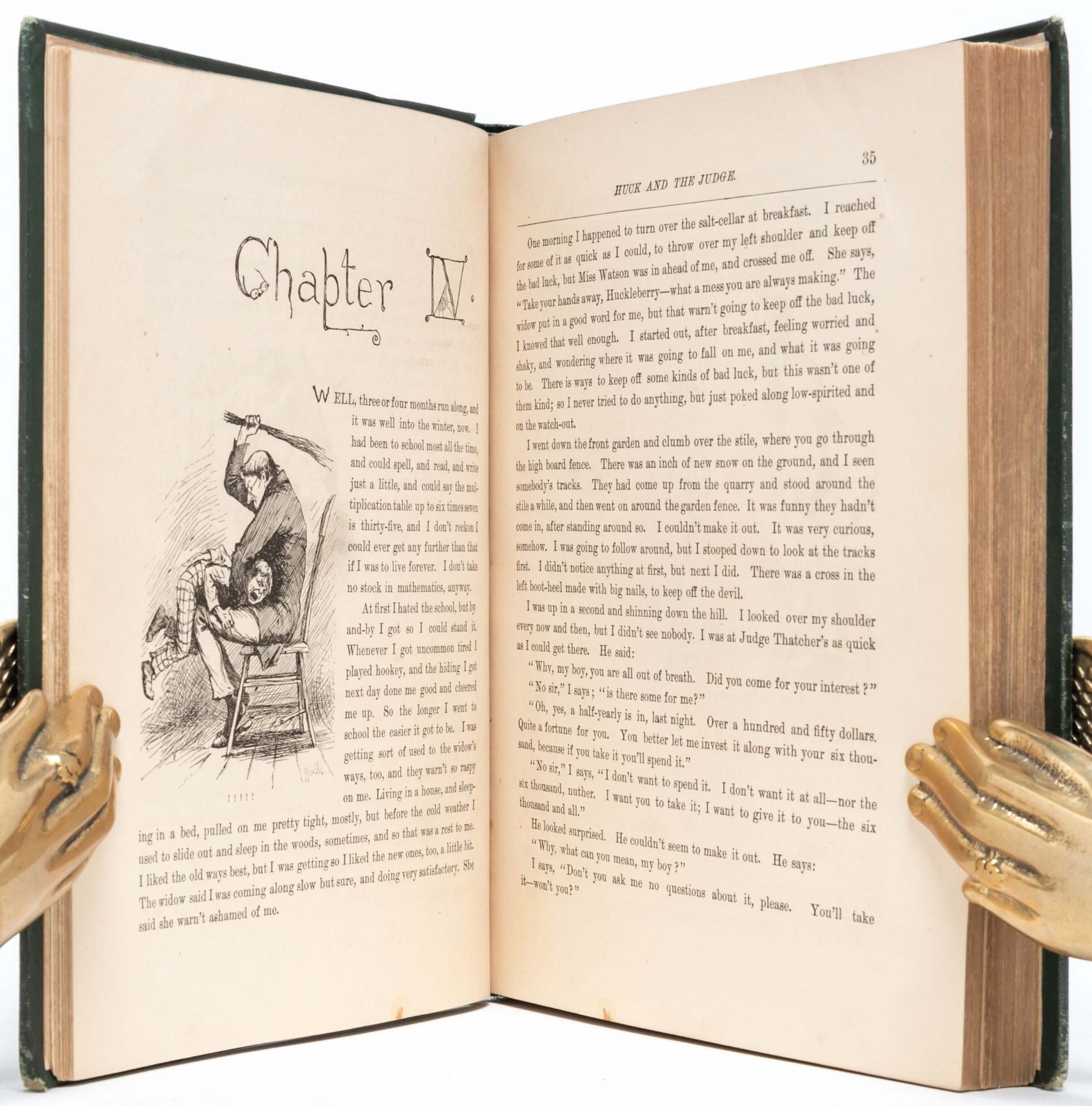 New York: Charles L. Webster and Company, 1885. First American edition. Very Good +. With original sketch by E. W. Kemble, artist of the iconic Huckleberry Finn frontisportrait, tipped onto the verso of the front free endpaper. The sketch is inscribed "To Ralph from E W Kemble" and captioned: "By gum: I do believe a Sody Fountain in Cairo would be a great snap."
