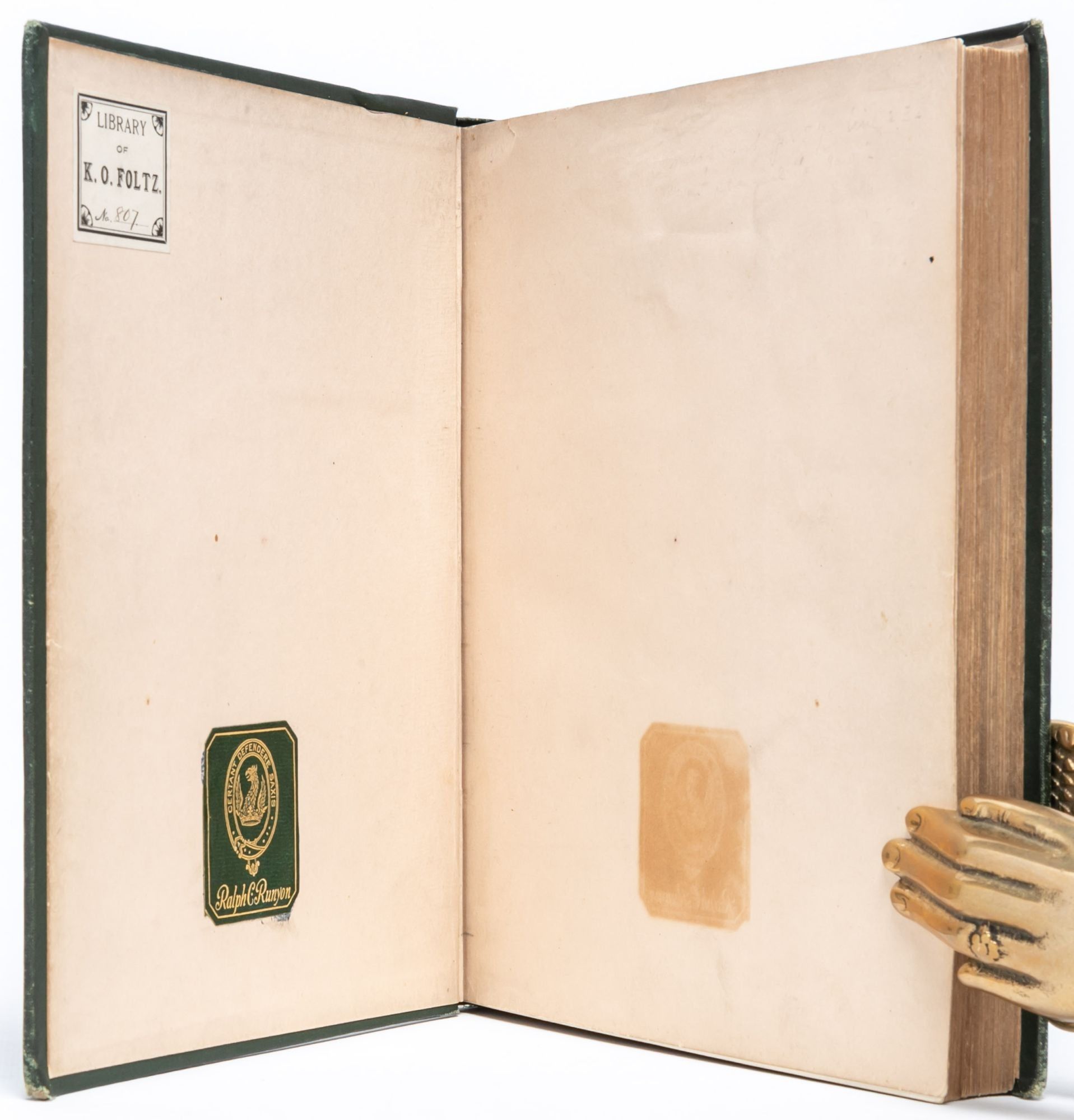A solid, Very Good+ copy of the book, with no repairs or restoration. Wear at the heel of the spine and lower corners, with the cloth worn through or fraying. Internal contents generally clean and fresh. Leather bookplate of Ralph C. Runyan and paper bookplate of K. O. Foltz to front pastedown. Frontis bust in the second state, but with the three main issue points to identify the first printing. Scarce with original artwork from one of the bookseller's key illustrators. Housed in a custom quarter leather slipcase with chemise.
