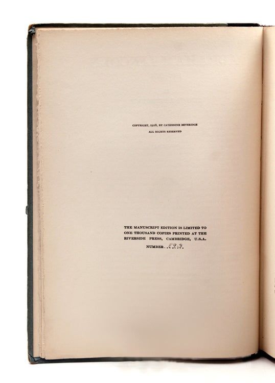 Boston: Houghton Mifflin Co, 1928. Manuscript edition, one of 1000 copies uncut, with page of manuscript tipped in. With Illustrations. Printed at the Riverside Press. 4 vols. Thick 8vo. Publisher's quarter blue cloth ans blue boards, uncut. Very good corners, bumped. Manuscript edition, one of 1000 copies uncut, with page of manuscript tipped in. With Illustrations. Printed at the Riverside Press. 4 vols. Thick 8vo.