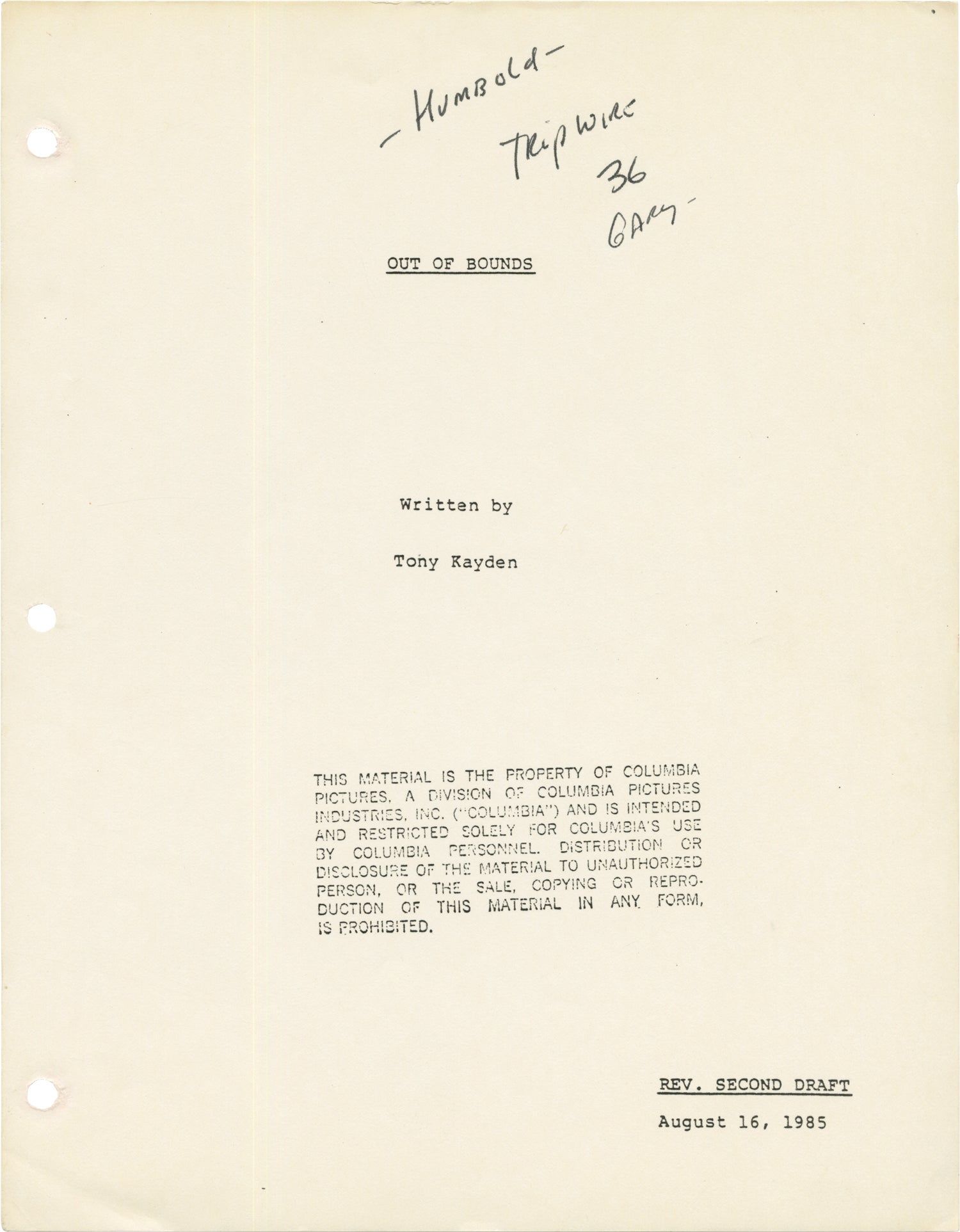 Out of Bounds (Original screenplay for the 1986 film)