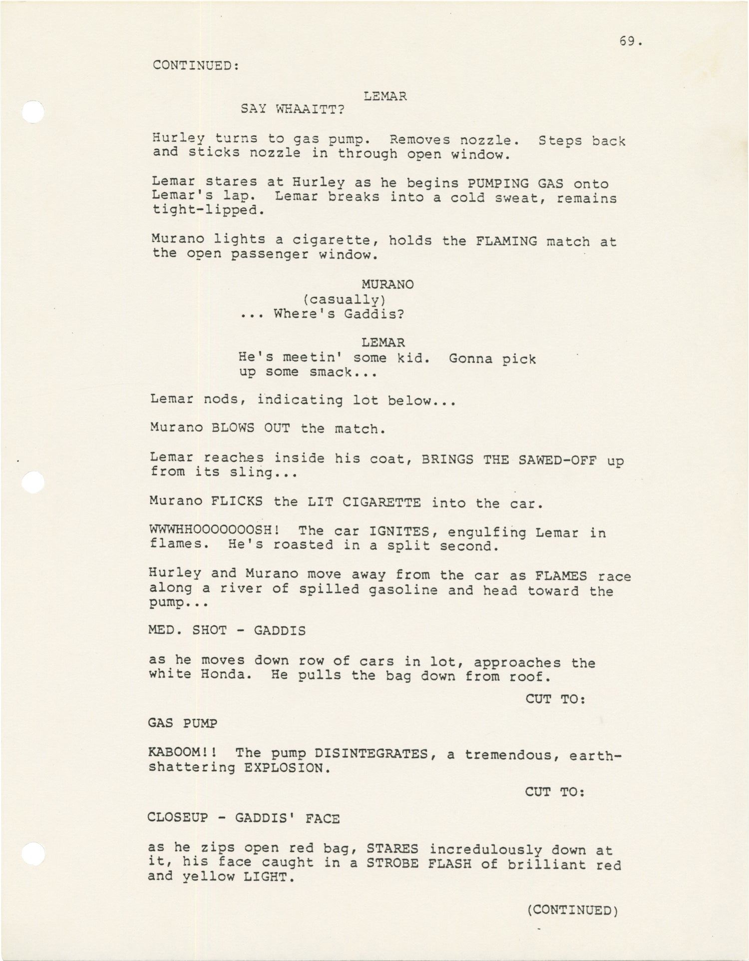 Red untitled wrappers. Title page present, dated August 16, 1985, noted as REV. SECOND DRAFT, with credit for screenwriter Tony Kayden. 116 leaves, with last page of text numbered 115. Xerographic duplication, rectos only. Pages about Fine, wrapper about Near Fine, with a few splashes on the front wrapper, bound with two gold brads.