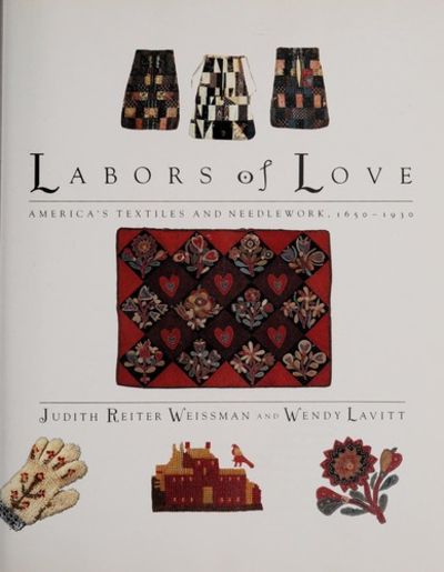 Distributed by Random House, 1987. Fine. Weissman, Judith Reiter. Labors of Love: America's Textiles and Needlework, 1650-1930. Lavitt, Wendy. New York: Distributed by Random House, 1987. 286pp. Indexed. Illustrated. Bibliography. 4to. Cloth. Signed by author. Book condition: Near fine. Inscribed by Lavitt on half title page. Dust Jacket Condition: Very good. Edges lightly bumped.