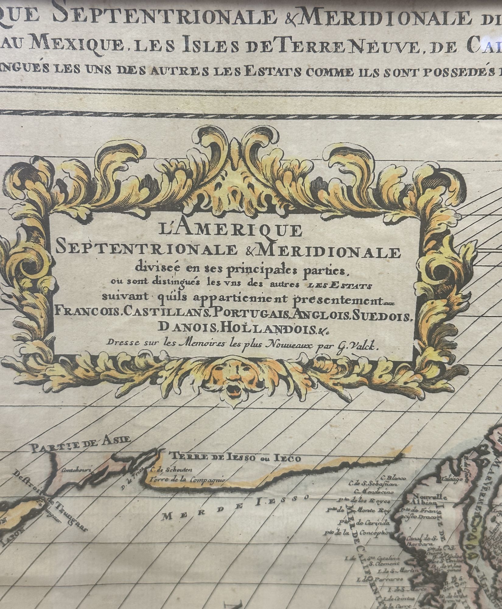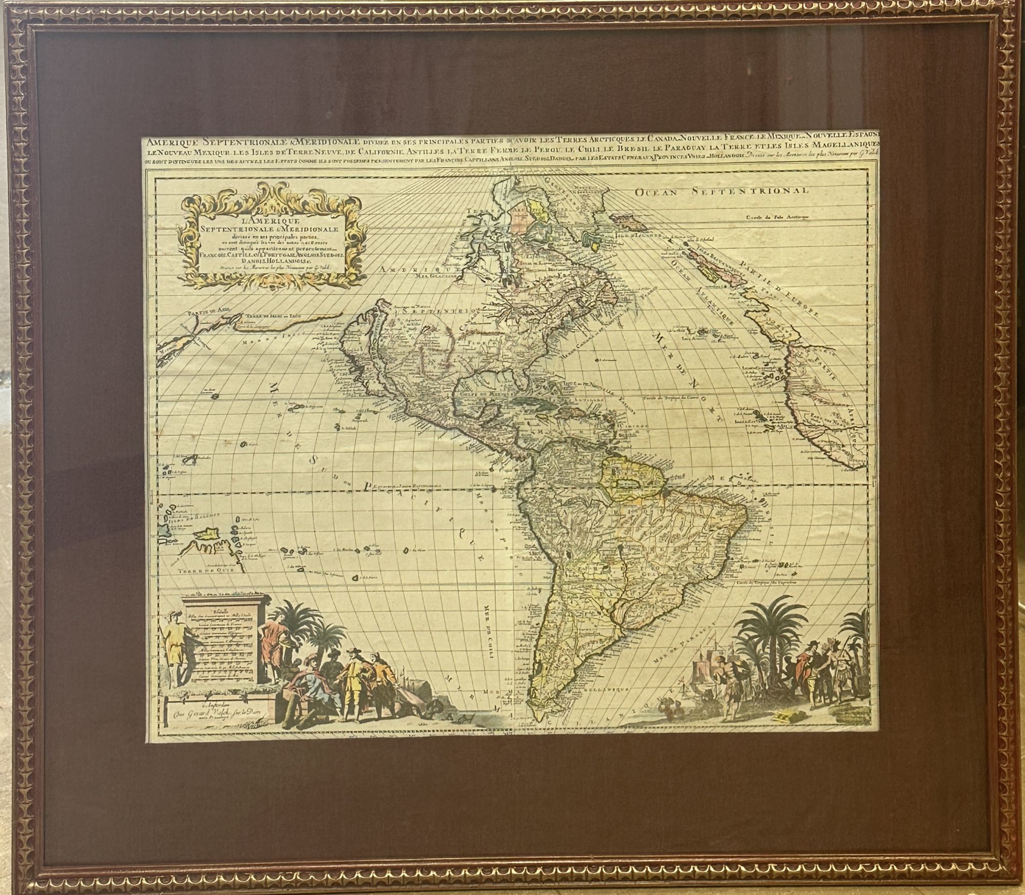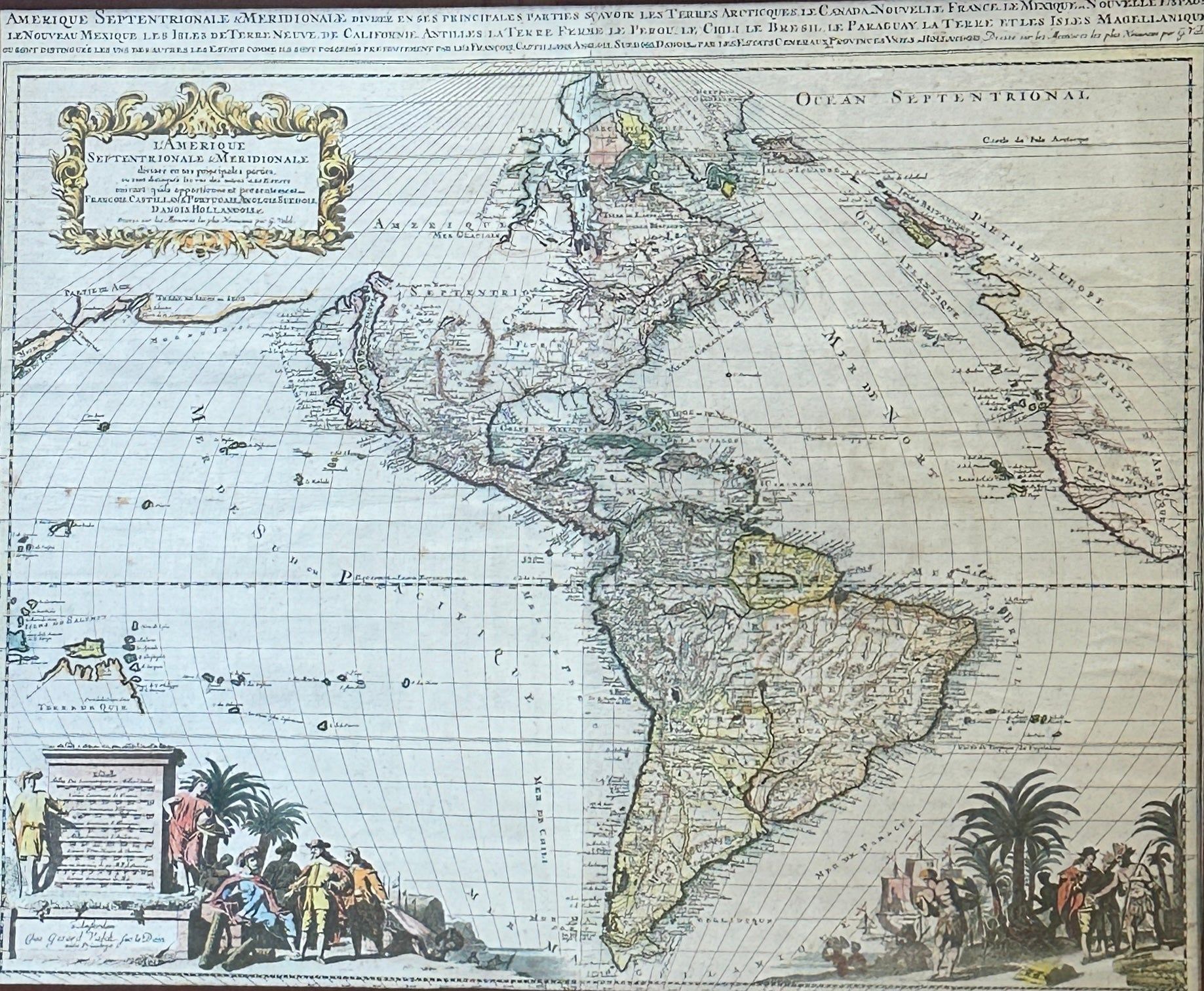 Amsterdam, c1700. Scarce hand-colored map is in Very Good condition with light age toning, light creasing and wrinkling, and scattered light foxing. Image: 20.5 in. x 17 in., Frame: 28 in. x 25 in. Not examined out of frame. PK Consignment. Shelved at Rockville Room B..