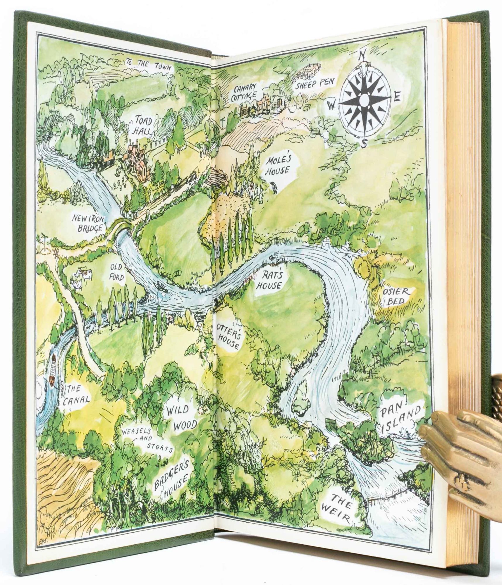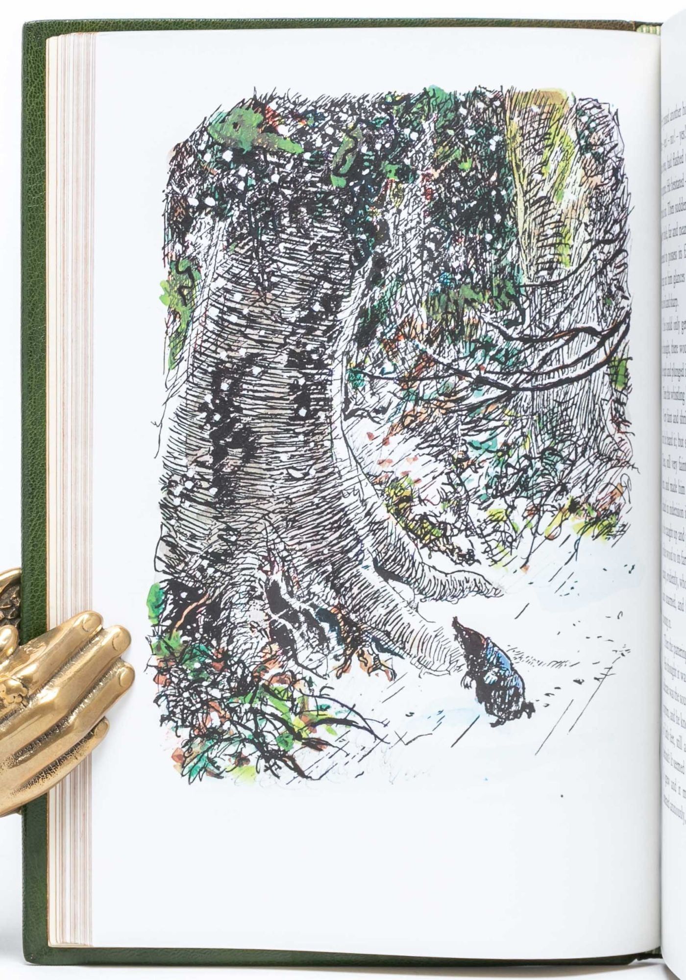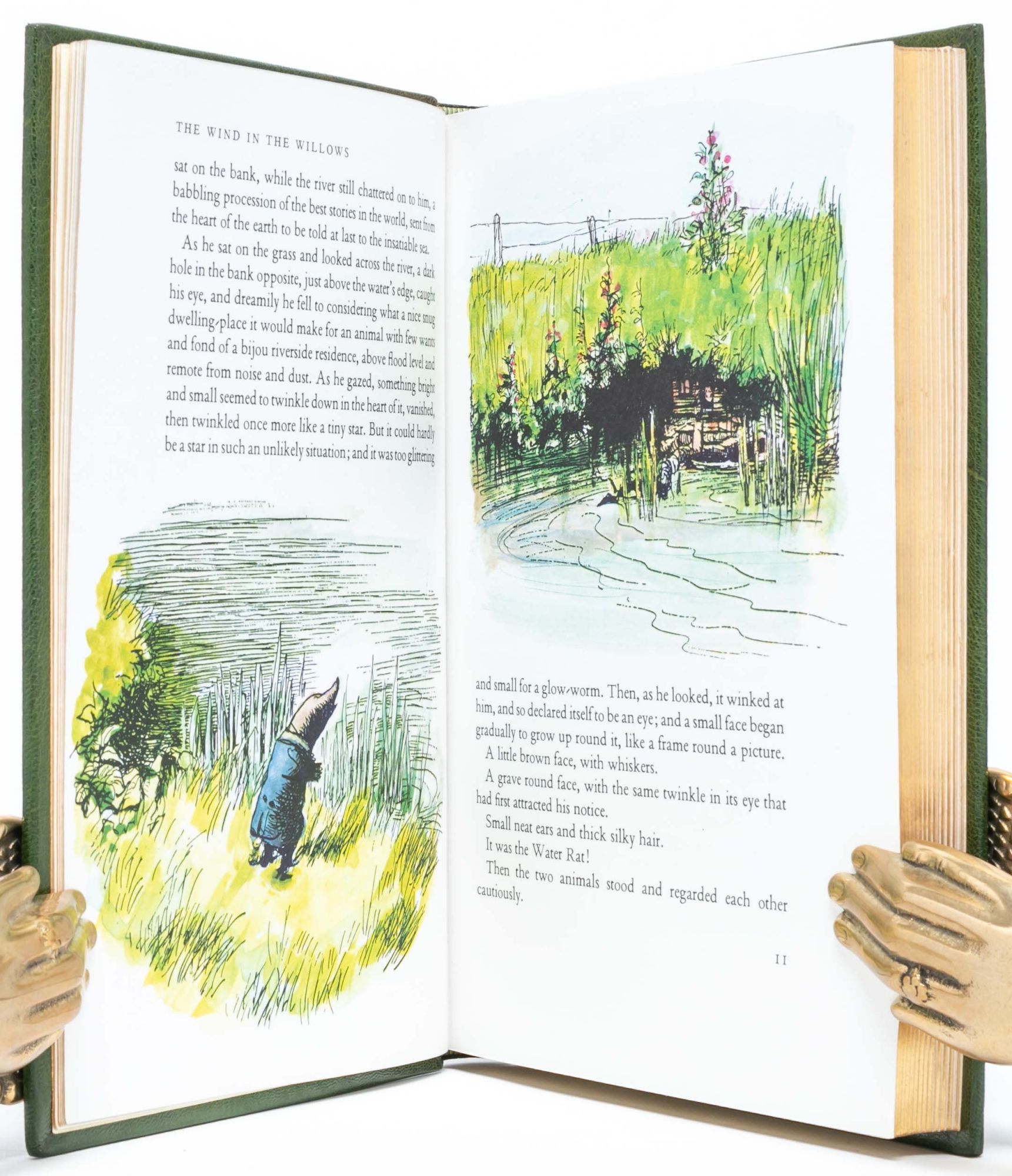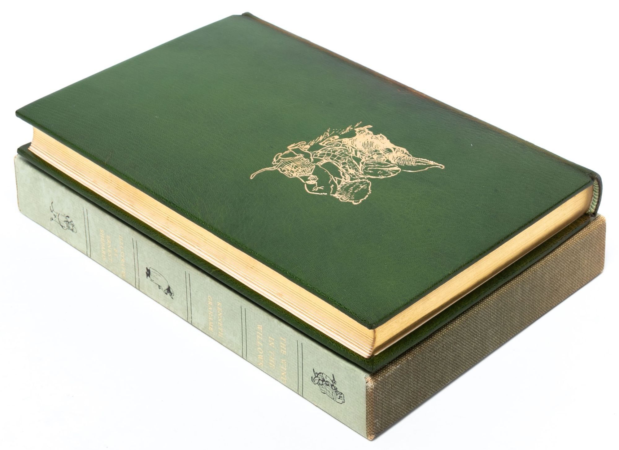 London: Methuen Children's Books, 1971. First thus. Fine/Near Fine. One of 250 copies signed by the illustrator, Ernest H. Shepard. Bound in publisher's full green morocco by Zaehnsdorf in the publisher's printed slipcase. Illustrated in color throughout by Shepard, with illustrated map endpapers and a title-page vignette. Some sunning to spine, but still a lovely, Fine copy, bright and fresh throughout. Slipcase Near Fine with some sunning to edges.