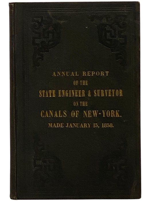 Albany: [Government Printing Office], 1858. Hard Cover. Very Good/No Jacket. A few minor blemishes to boards, ink name on front endpaper. 1858 Hard Cover. 192 pp. An engineering report submitted to the New York Senate regarding canals, illustrated with several fold-out diagrams.