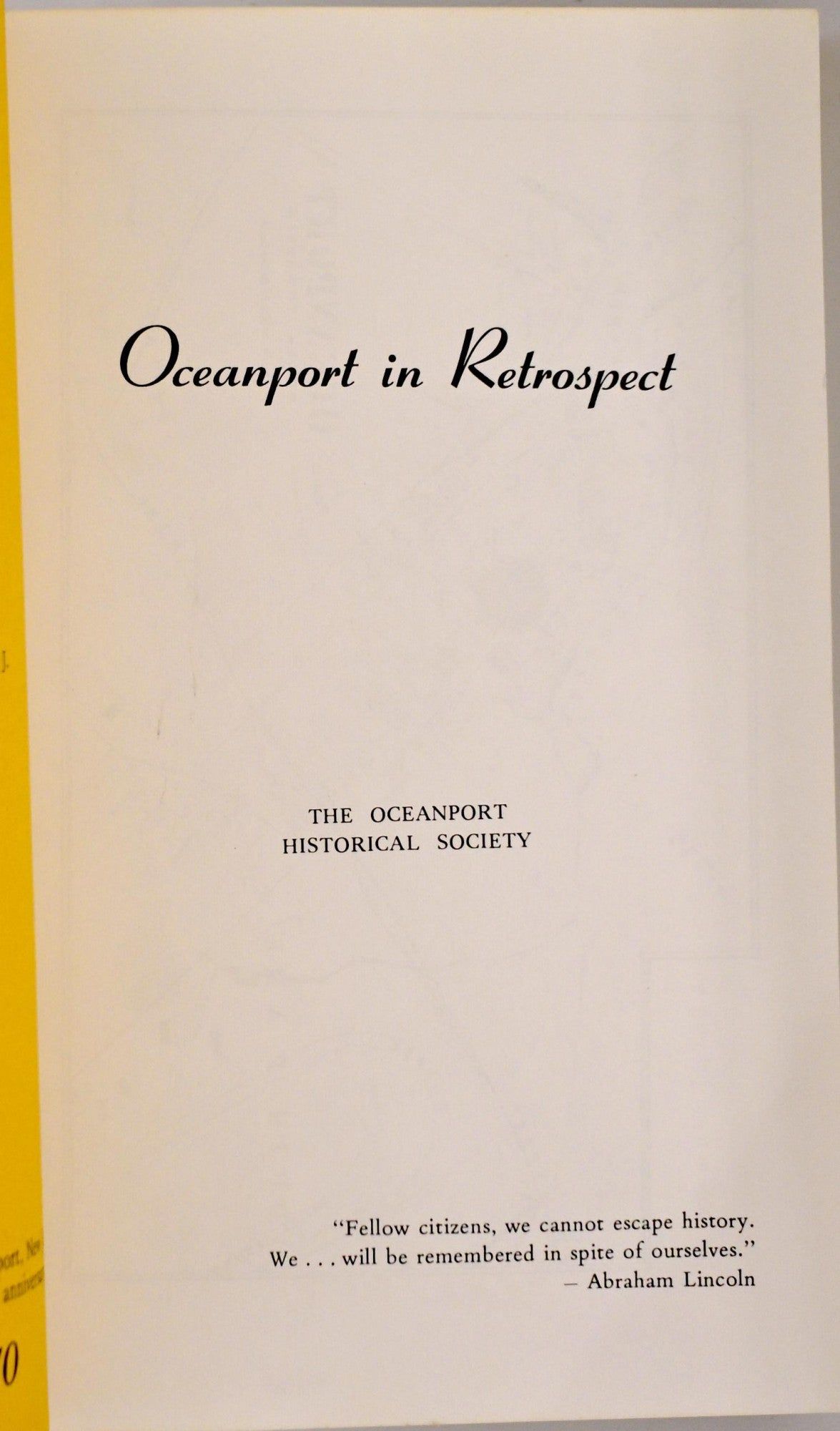 New Jersey: Burough of Oceanport, 1970. First Edition. Soft Cover. Near Fine binding. 8vo;; bound in yellow paperback with the titling and illustration printed in black; a street map of Oceanport is bound in as issued; a trivial fold on the rear wrapper; some light foxing to the edge of the textblock, a few very small stains on the wrappers. Near Fine binding.
