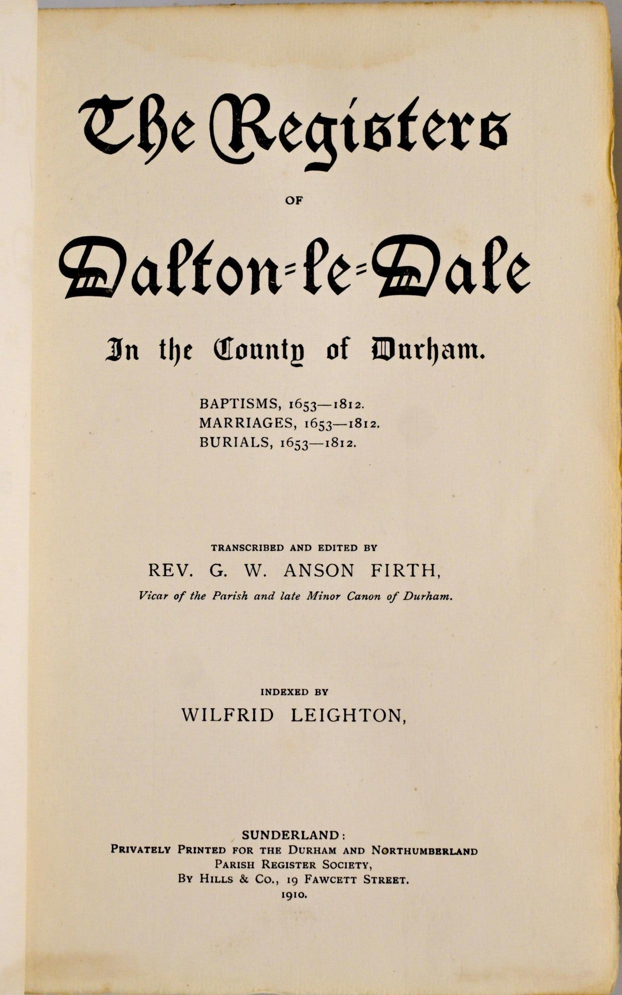 [GENEALOGY] THE REGISTERS OF DALTON-LE-DALE, IN THE COUNTY OF DURHAM. BAPTISMS, 1635-1812;. MARRIAGES, 1653=1812. BURIALS, 1653-1812