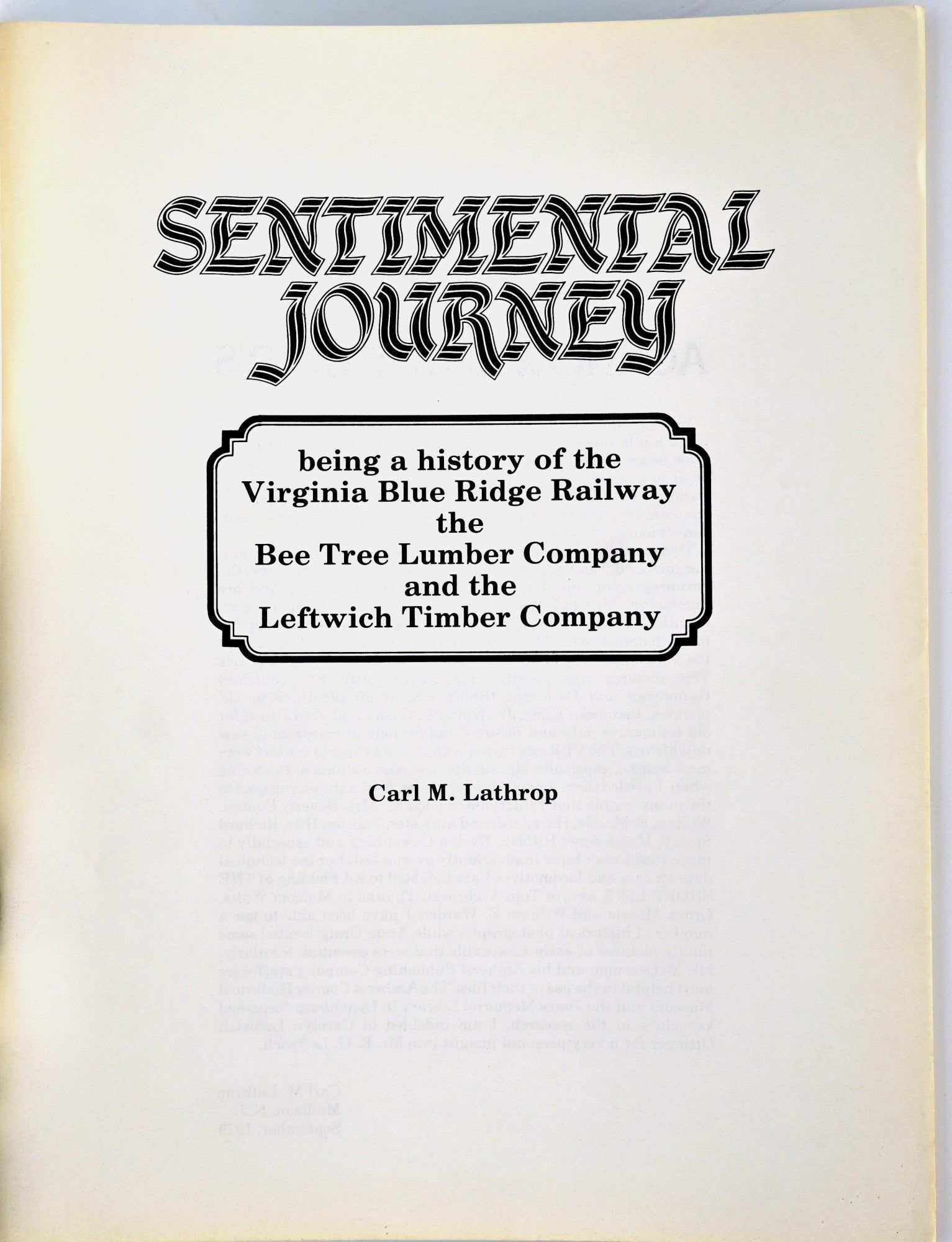[SHENANDOAH VALLEY] SENTIMENTAL JOURNEY: BEING A HISTORY OF THE VIRGINIA BLUE RIDGE RAILWAY, THE BEE TREE LUMBER COMPANY AND THE LEFTWICH TIMBER COMPANY