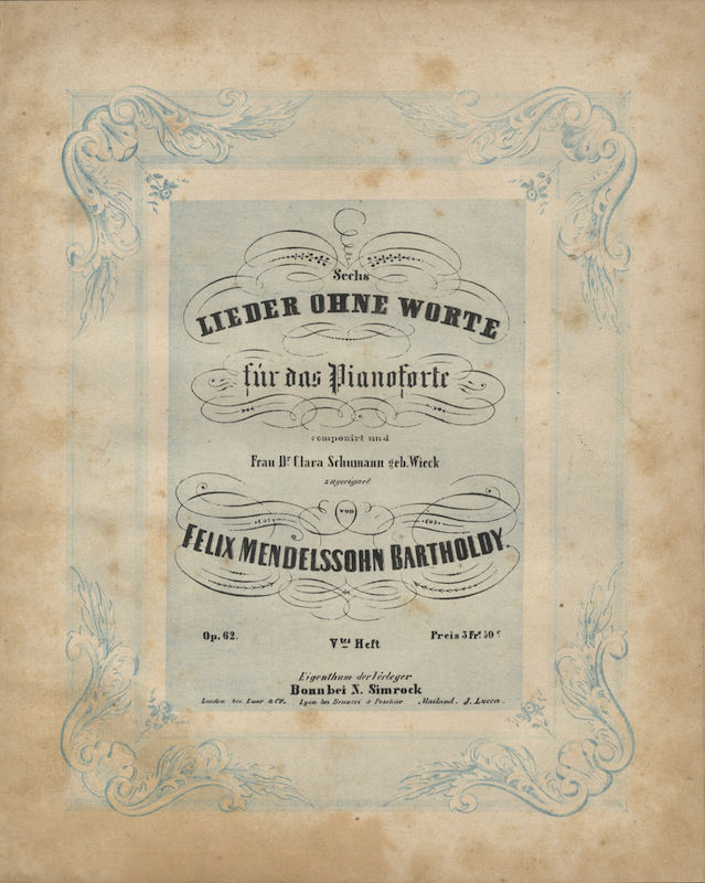 This volume of the Songs Without Words contains Mendelssohn's "Spring Song.