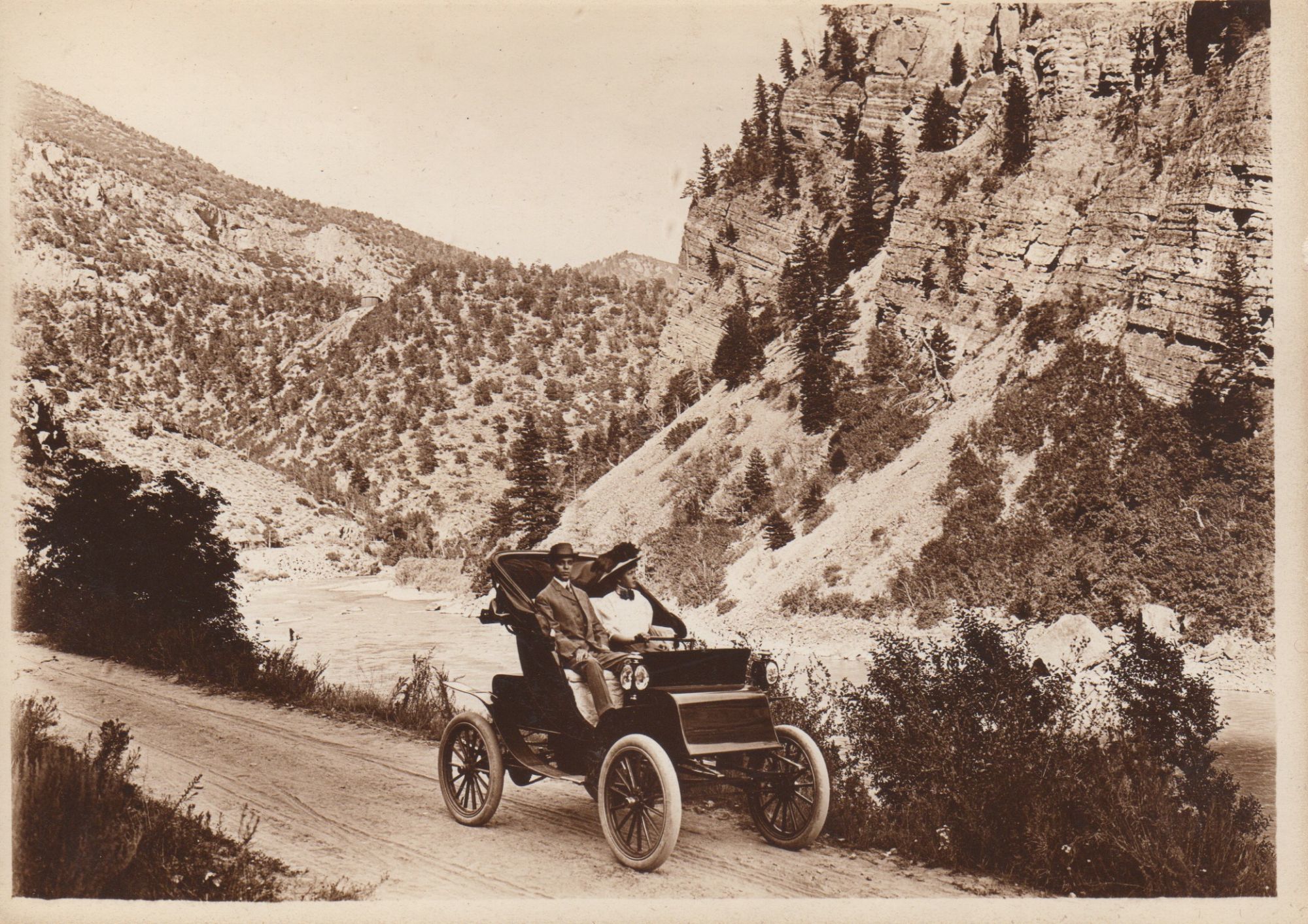 One of the most interesting electric car shots is labeled “Mrs. J. C. Osgood’s Mountain Home and her Fritchle Electric”, and it shows the car driving up the long driveway of the Cleveholm Manor in Redstone, Colorado—a company town founded by mining mogul and robber baron John C. Osgood.