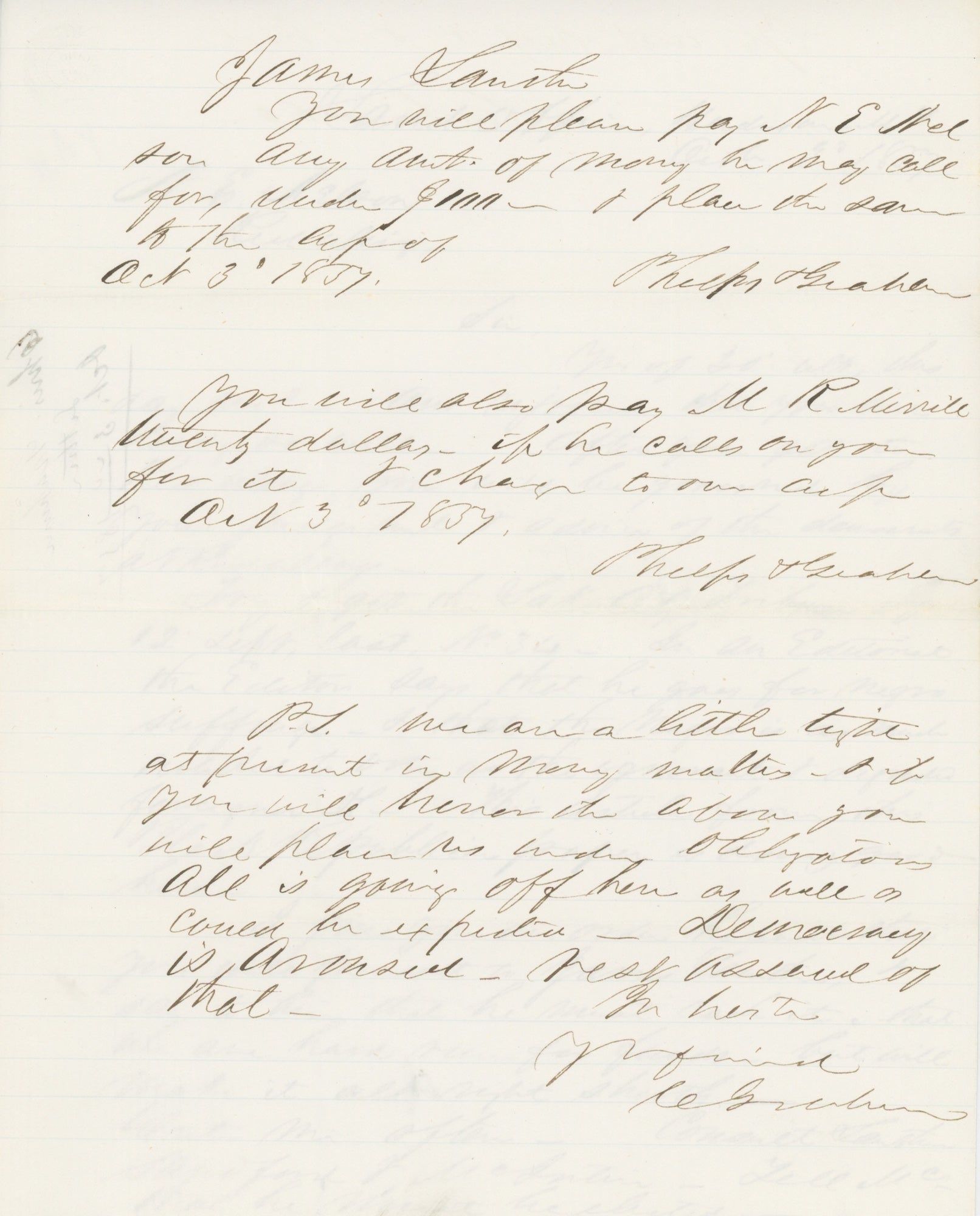 Henderson, Minnesota Territory, 1857. Single three-page letter measuring 8 x 10 inches. Fine.. A letter written shortly before Minnesota’s statehood concerning territorial politics, particularly African-American suffrage. The author, C. Graham, writes to N. E. Nelson: