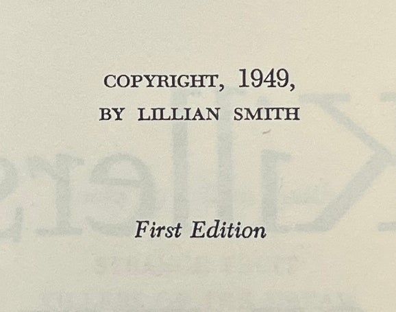 New York: W.W. Norton & Company, Inc, 1949. First Edition. Hardcover. Near Fine/Very Good. Near Fine in a Very Good jacket, unclipped ($3.00), lightly rubbed, some tape repairs at the edges and on the verso. Black cloth with gilt lettering on the spine. Square and firmly bound, clean internally. From the author of Strange Fruit, a novel about the American South and "the white man and his dreams about himself.