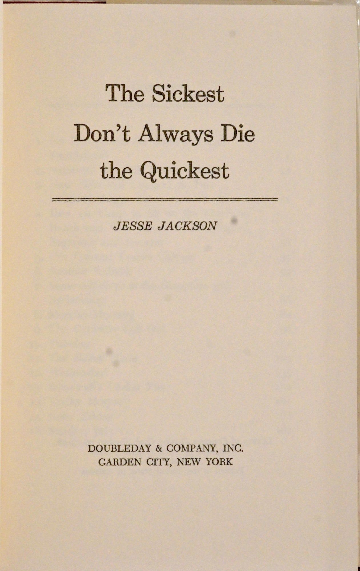 Garden City: Doubleday & Company, Inc, 1971. Hard Cover. Near Fine binding/Very Good dust jacket. Signed by Jackson on the front free endpaper. 8vo; in the publisher’s burgundy cloth binding; in dust jacket; the jacket has some edgewear; a couple of trivial spots; some minor staining to the rear; there is a price sticker on the front flap; overall a very nice copy.~~Signed by the author Jesse Jackson on the front end paper.~~From the rear of the dust jacket “Stoney’s world will be news to many of all ages, black white... fresh, warm, honest Americana about a real American boy. Stoney should make a lot of friends.” - The New York Book Review. Near Fine binding / Very Good dust jacket.