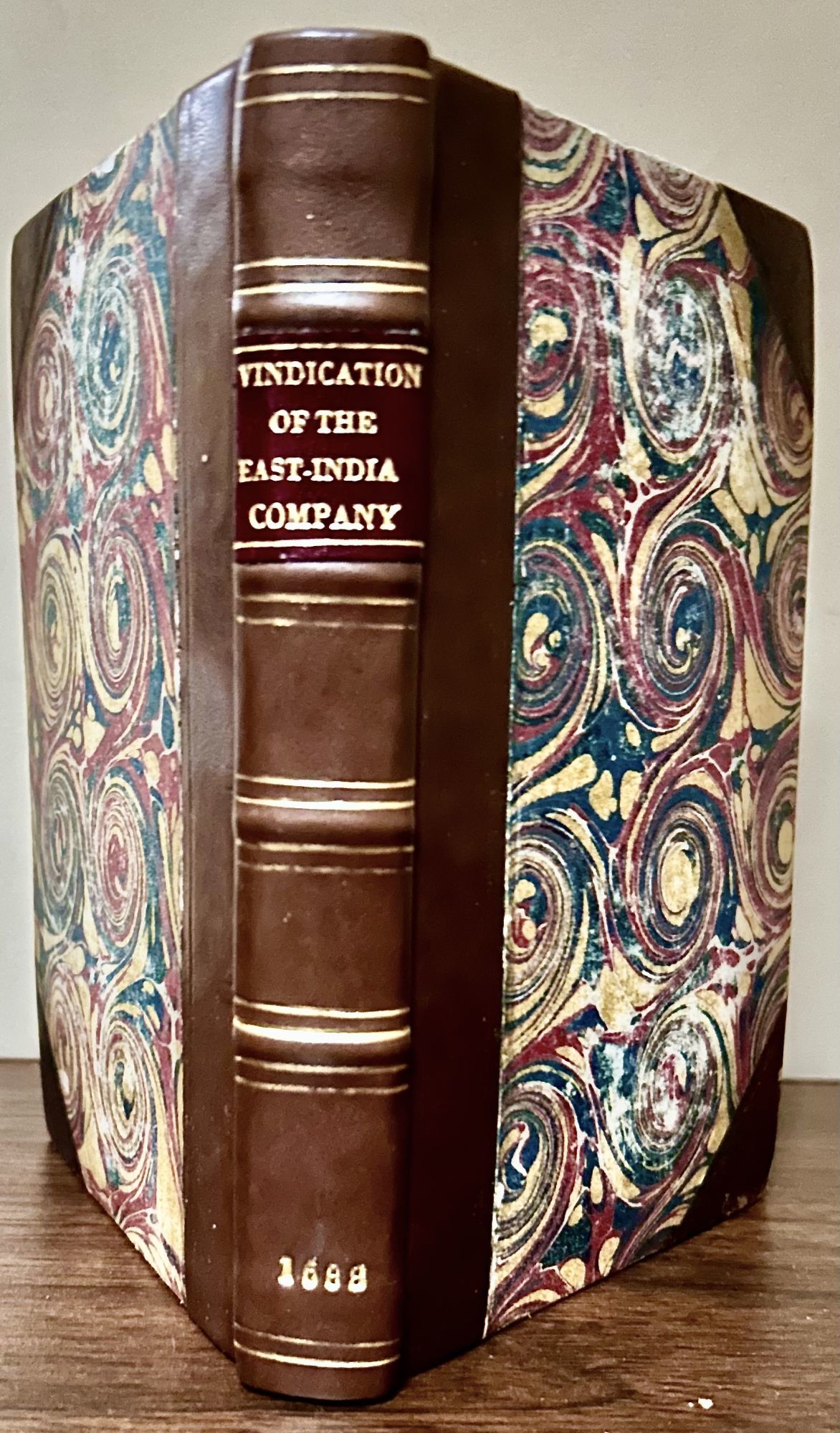 London: J. Richardson for Samuel Titmarsh, 1688. First edition. Hardcover. Three quarter brown calf, marbled boards rebacked. Near fine. 6, 223, [1]. 81, [1], 34 pages. 18 x 12 cm. The anonymous author of this work attempts to refute the "slanderous imputations" of the work Justification of the Directors of the Netherlands East-India Company (reprinted here in full, with a separate title, following page 223). He proclaims that it is "such a tedious rhapsody of fictitious, fallacious inferences and arguments confusedly mixt with some distorted truths spun out... that it would be tiresome to the reader to trace all the prevarication's, mis-recitals and sophistry contained in it. [I] shall proceed to detect his willful mistakes by which he endeavours to honest many injurious and insolent violations of right done by the Dutch towards the English in India directly contrary to the Articles of Peace." KRESS 1675. WING. I90, J1259. Interior contents clean and bright. Raised bands, red leather spine label printed in gilt.