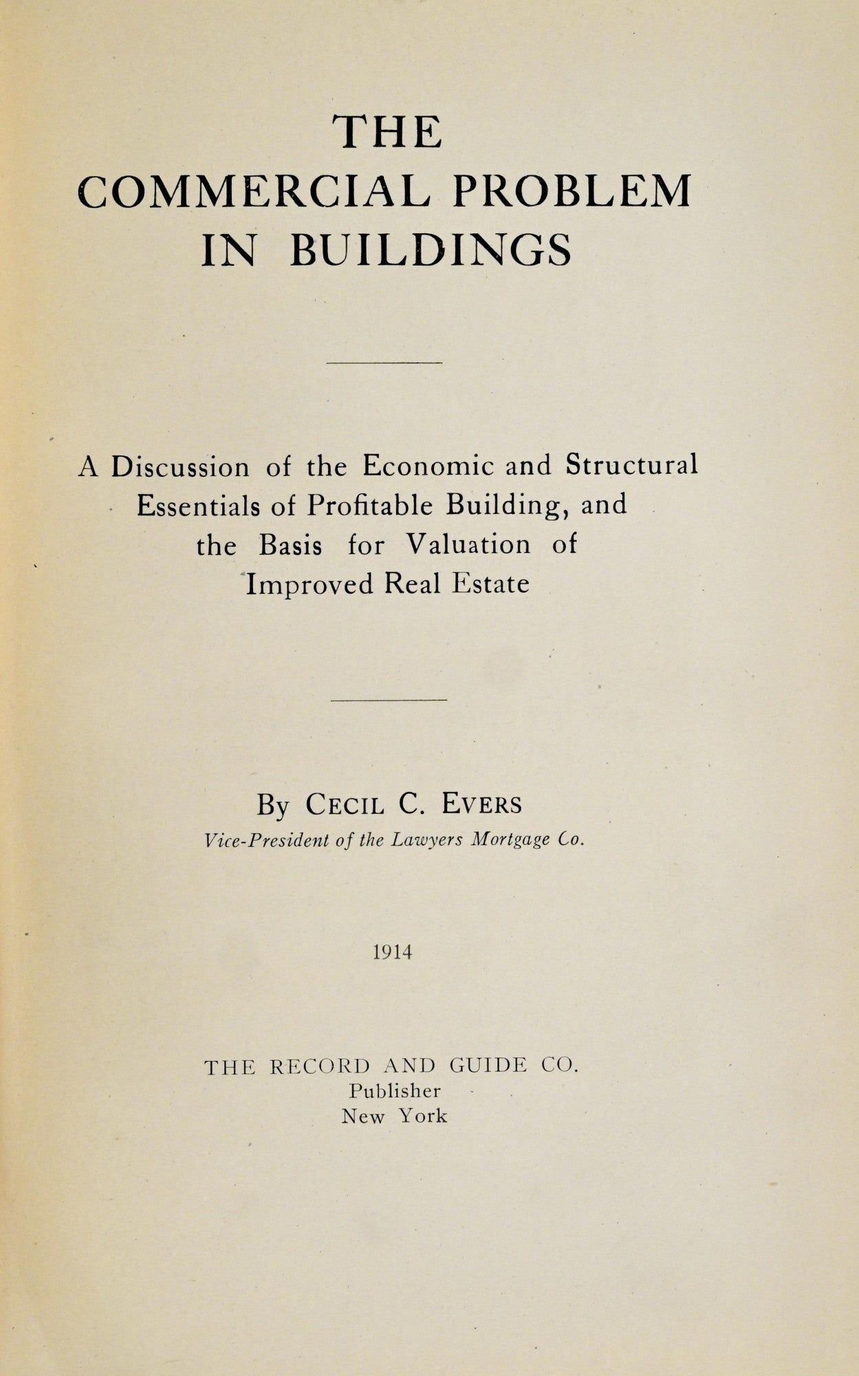 [ARCHITECTURE] THE COMMERCIAL PROBLEM IN BUILDINGS: A DISCUSSION OF THE ECONOMIC AND STRUCTURAL ESSENTIALS OF PROFITABLE BUILDING, AND THE BASIS FOR VALUATION OF IMPROVED REAL ESTATE