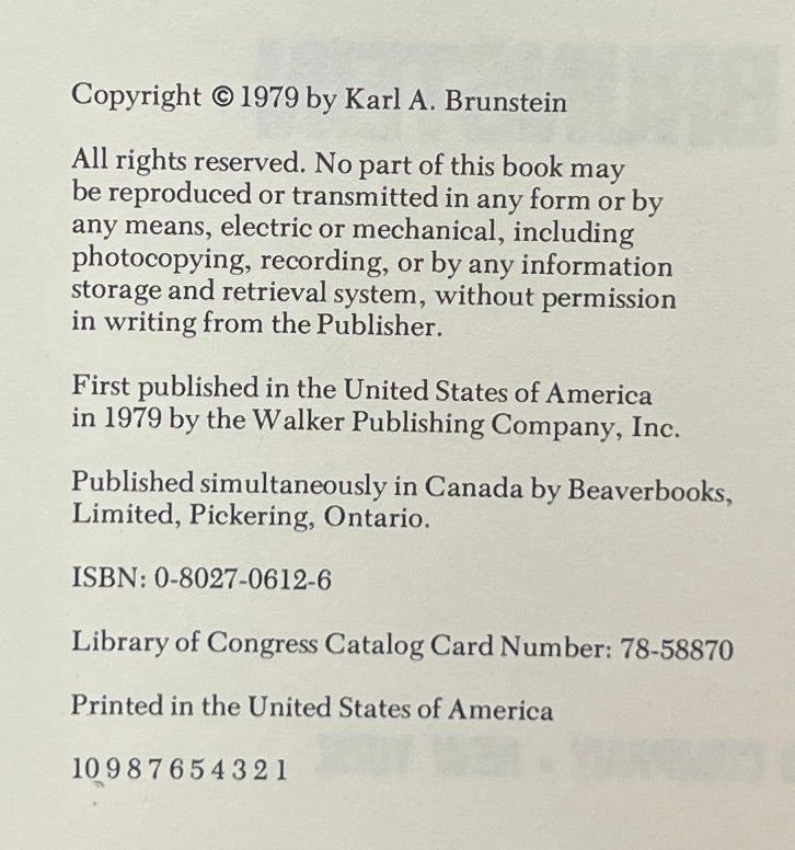 New York: Walker and Company, 1979. First Edition. Hardcover. Good/Good. Good in a Good jacket, unclipped ($12.50), generally soiled, a few chips and tape repairs, underlining on the flaps of the jacket. Blue paper on the boards, lightly rubbed, with red ink lettering on the spine. Firmly bound with a slight forward lean, ownership signature of Tom Benson on the front endpaper, a few instances of marginalia. Brunstein's work that argues for the existence of a fifth dimension to explain UFOs. From the collection of ufologist Tom Benson.