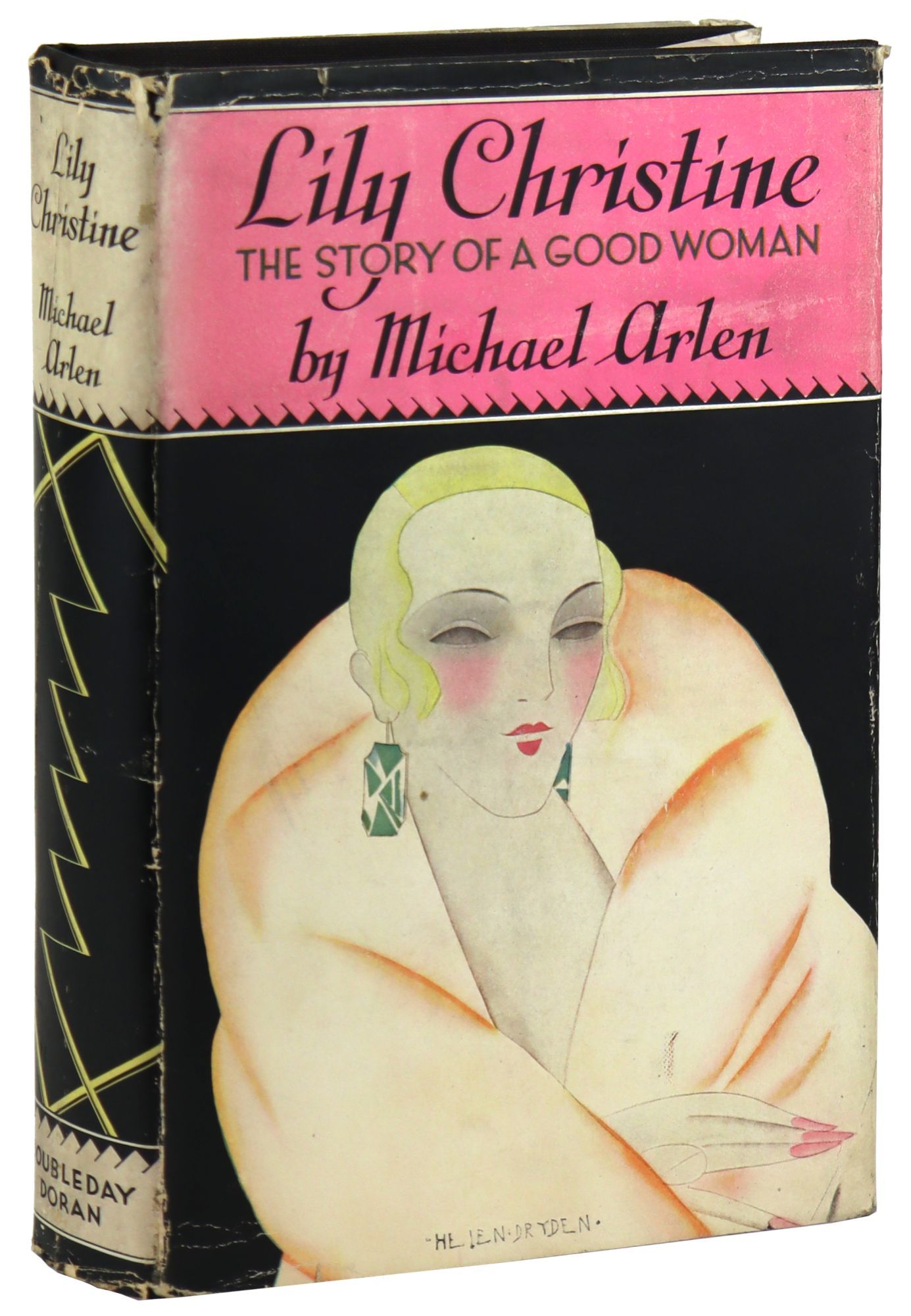 Garden City, New York: Doubleday, Doran & Company, Inc, 1928. Very Good+/Very Good. Garden City, New York: Doubleday, Doran & Company, Inc., 1928. First Edition Stated. Octavo (20 cm); 307pp. Boards in black cloth with pink and gilt stamping, wrapped in publisher's intact pictorial Art Deco motif jacket, designed by Helen Dryden ($2.50). Pink top stain and pink illustrated endsheets. Jacket generally rubbed and scuffed, mostly at margins, and lightly dust soiled. Spine sunned with minor chips to ends and creased along middle. Verso lightly toned. Board corners and spine ends gently bumped. Top stain lightly faded and soiled. Pages clean. A Very Good or better copy in a Very Good jacket.