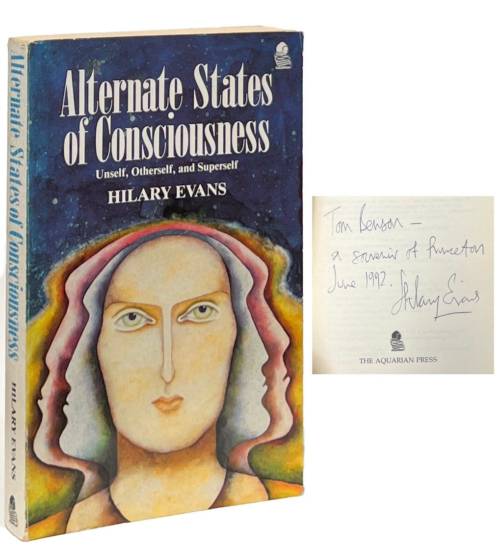 Wellingborough: The Aquarian Press, 1989. First Edition. Paperback. Near Fine. Inscribed on the title page by Evans to Tom Benson. Good. Wraps rubbed, multiple creases down the spine. Bound with a slight forward lean and reading wear, clean internally. Evans's work that describes and defines types of ASC as well as their individual and social causes. From the collection of ufologist Tom Benson.