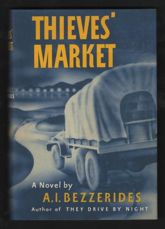 New York: Charles Scribner's Sons. Very Good-. 1949. 1st Edition (A). Hardcover. (lacking the original dust jacket, but encased in a nice-looking facsimile reproduction of same; see 2nd image posted with this listing) [moderately worn copy, light soiling/foxing to top edge of text block, spine cloth somewhat faded and lightly stained; "Research Library / Twentieth Century-Fox" stamps on both pastedowns and on title page]. Classic hard-boiled/proletarian novel, about an immigrant trucker (of Greek heritage, as is the author) who, while trying to make a living hauling produce in California's Central Valley, has a tought time maintaining his independence and integrity while dealing with the underworld types who control the West Coast produce markets. The author drew on his own experiences for the book, and took it to the next artistic level as well, doing the screenplay for the pretty damn good movie version, directed by Jules Dassin -- whose political sympathies, well-tuned to the needs of this particular narrative, got him blacklisted not long after. The movie (retitled THIEVES' HIGHWAY) starred Richard Conte, Valentina Cortese, and Lee J. Cobb, at his snarling best as a vicious and crooked produce kingpin; this particular copy originated in the research library of the studio that made the film, Twentieth Century-Fox. NOTE again that this book bears a FACSIMILE dust jacket, to serve the dual purpose of protecting the book from further wear and enhancing its appearance on the shelf; its presence has not been factored in to our pricing. .