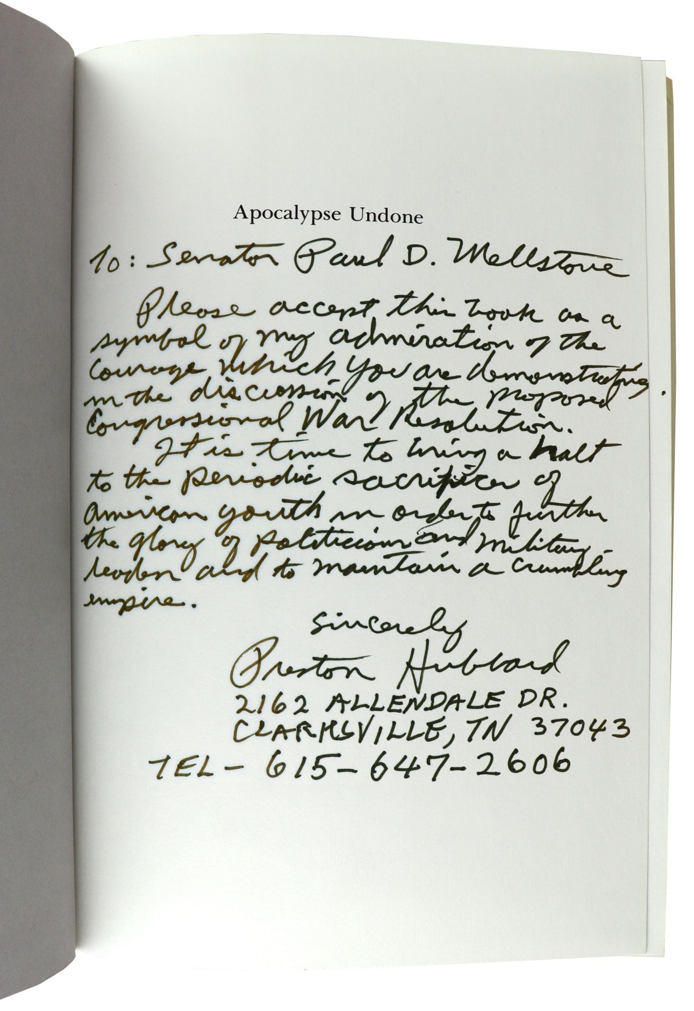 Apocalypse Undone: My Survival of Japanese Imprisonment During World War II [Inscribed by Hubbard to Sen. Paul Wellstone]