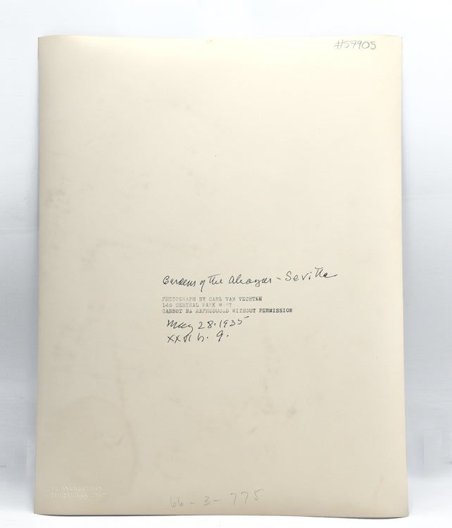 1935. 1 vols. 13-1/2 x 10-3/4 inches. Atelier stamped on verso: Photograph by Carl Van Vechten/146 Central Park West/Cannot be reproduced without permission. Holograph notations in ink giving the subject of the photograph and the number of the negative. 1 vols. 13-1/2 x 10-3/4 inches.