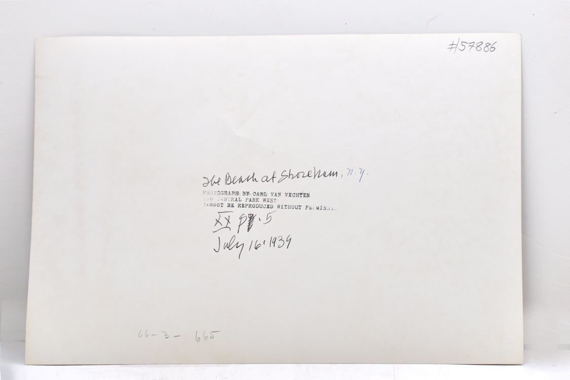 1939. 1 vols. 9 x 13-1/2 inches. Atelier stamped on verso: Photograph by Carl Van Vechten/146 Central Park West/Cannot be reproduced without permission. Holograph notations in ink giving the subject of the photograph and the number of the negative. 1 vols. 9 x 13-1/2 inches.