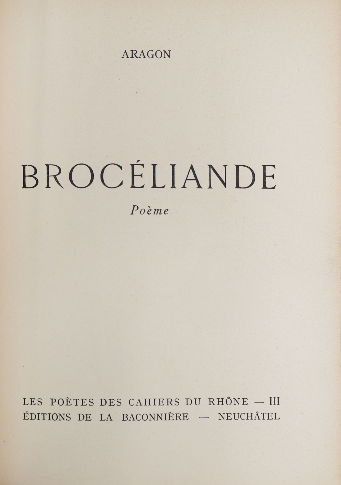 Brocéliande. Poème. [Series title:] Les poètes des Cahiers du Rhône III