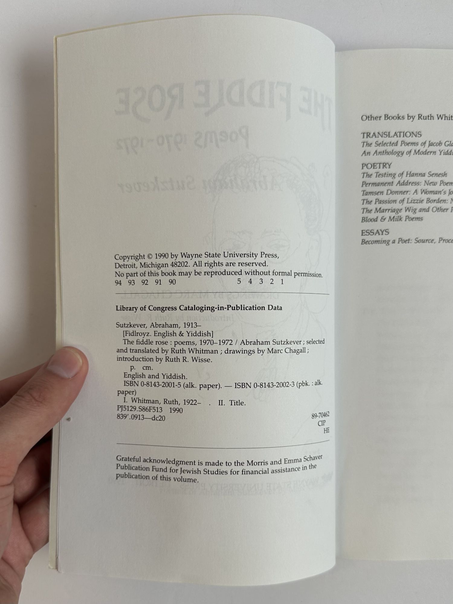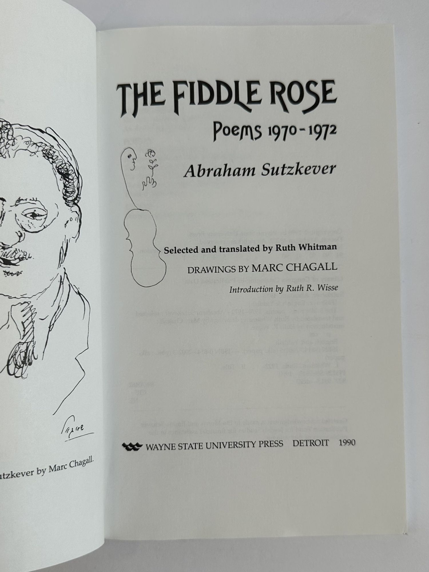 Detroit, Michigan: Wayne State University Press, 1990. First Edition, First Printing. Softcover. Octavo, 221 pages. In Very Good condition. Spine is cream with red and sage green lettering. Wraps have mild creasing along front cover. Textblock has mild waviness along head edge; interior has mild bending wear along pp.73-74. Contains a frontispiece of Sutzkever [Author] by Chagall [Illustrator]. Shelved in Poetry. 1399851. Shelved Dupont Bookstore.