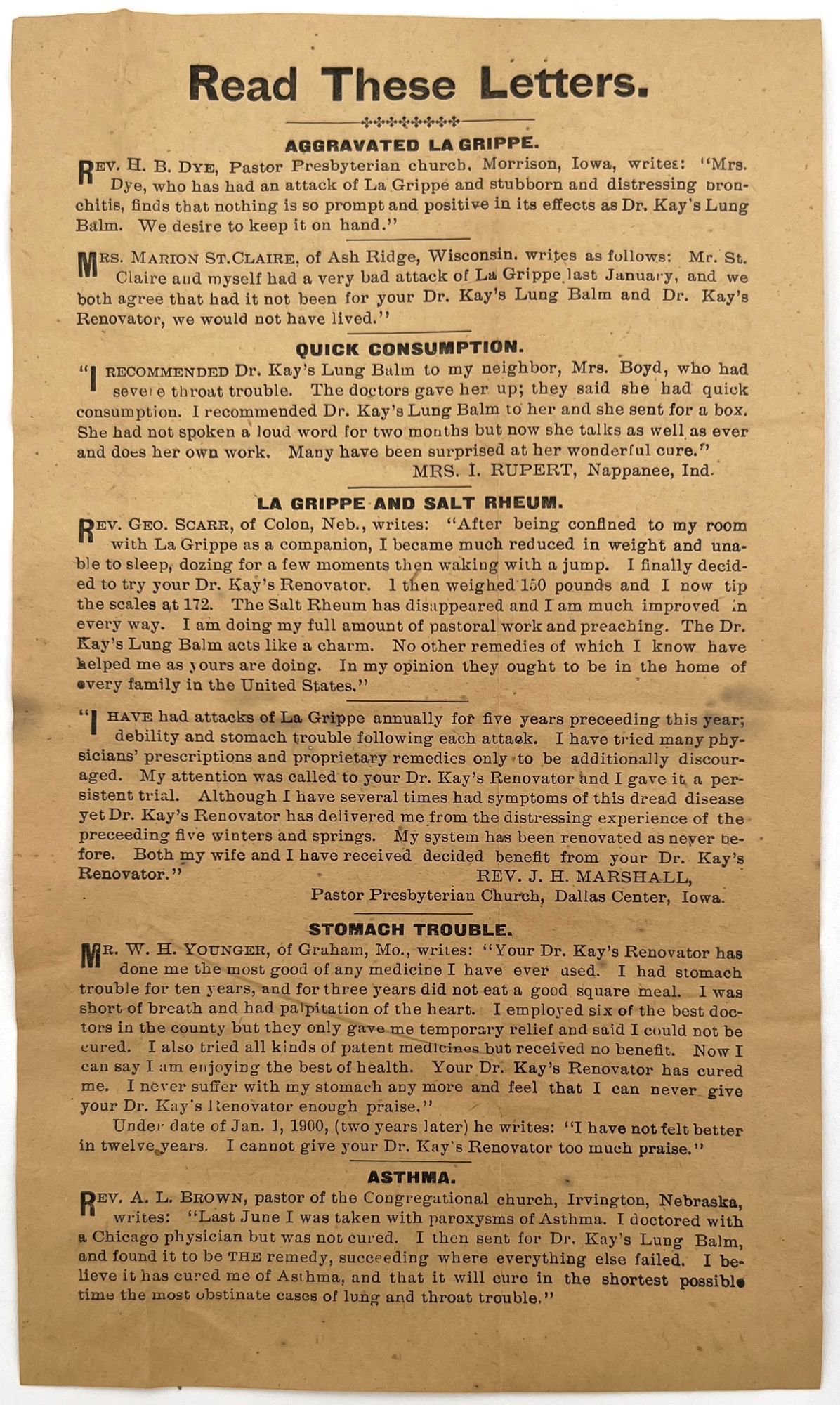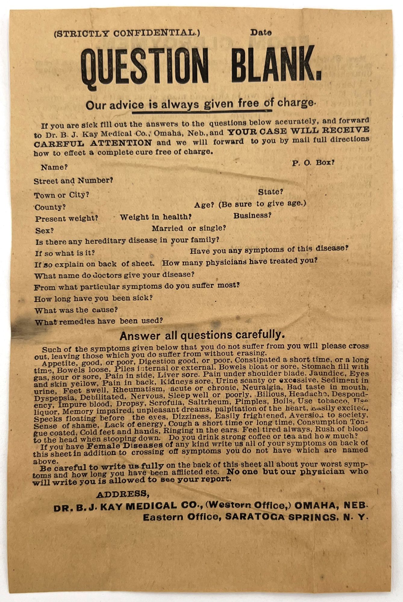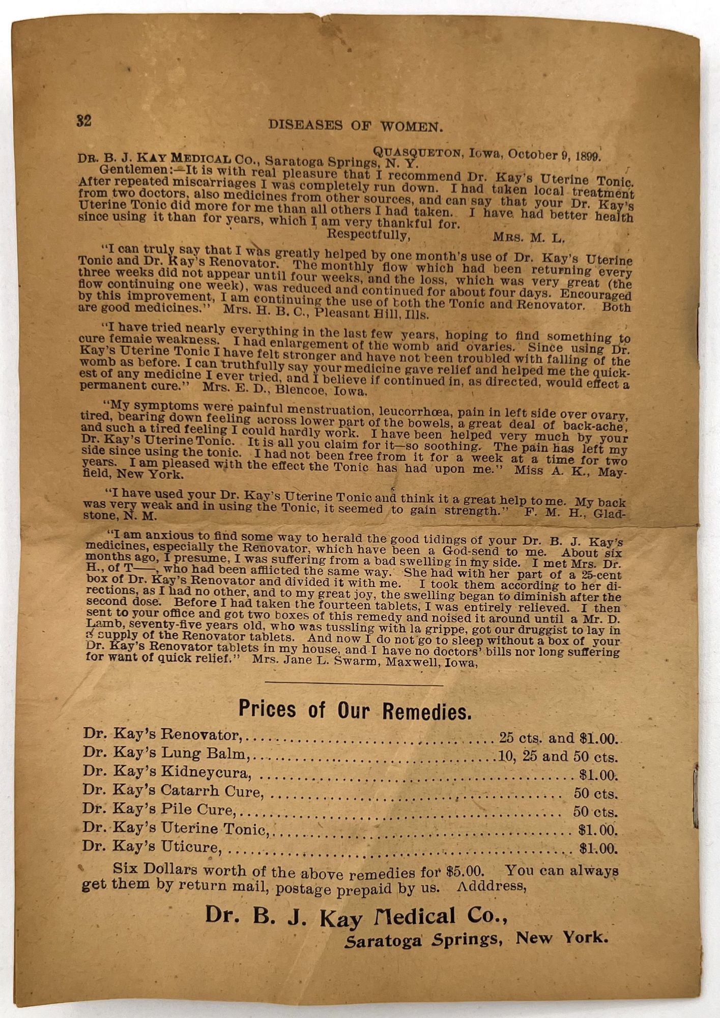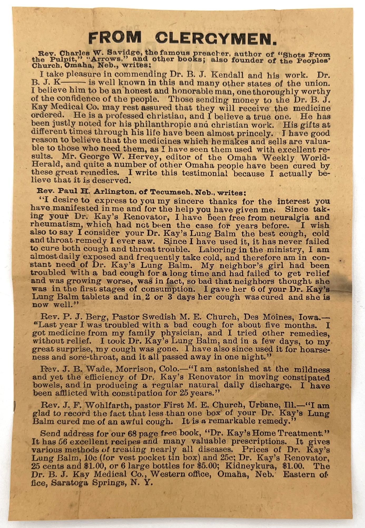 - Omaha, Nebraska: Dr. B.J. Kay Medical Co, 1899