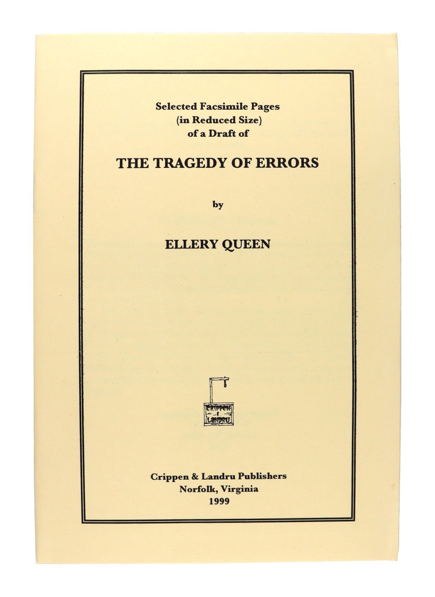 First book publication of an outline for the final Ellery Queen novel, with additional short stories, essays, and remembrances. Accompanying chapbook is of selected facsimile pages of the draft. Jacket blurbs mistakenly advertise this as a Signed Limited Edition, though there is no signature herein and no promise of one on the limitation statement.