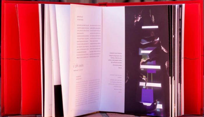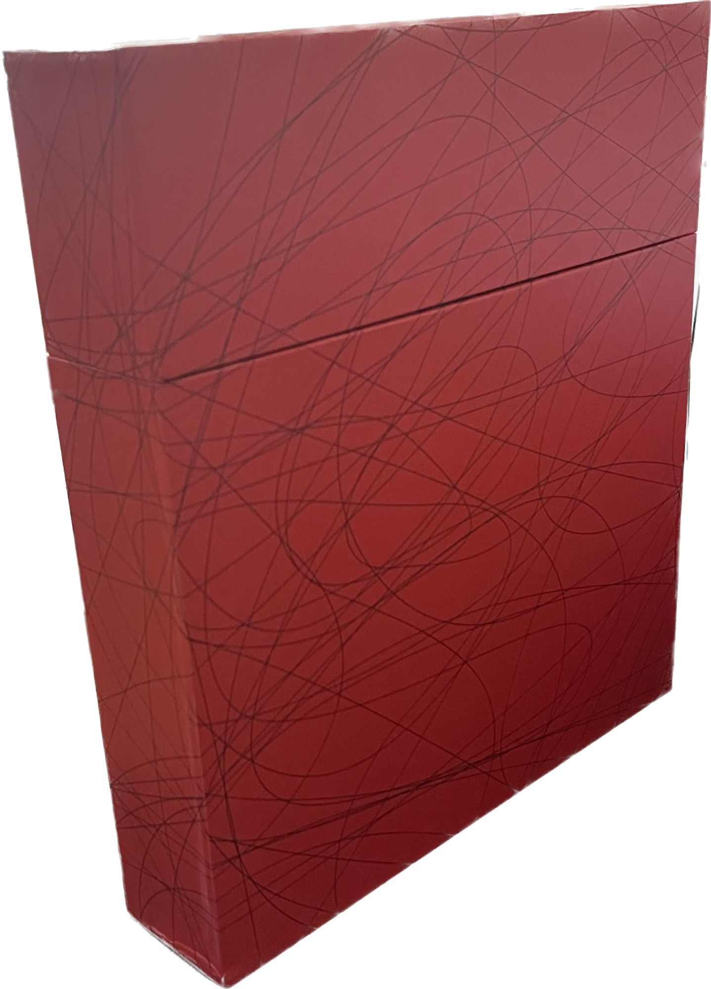 Bogotá: Museo de Arte Moderno Bogotá, MAMBO, 2023. color plates (some fldg.), chron., cloth pict. boards, inside slipcase, plus two small staple bound booklets ([4] pages ea.; 13 cm) titled “La superestructura, la música y mi música” and “Superstructure, music and my music” inserted in page 20. “To see the artworks’ videos, scan the QR code” --Page [3]. NOTE: When the books open and because of the way the covers are constructed, a transversal folded part in the middle of the irregular front and verso covers of both books moves and elevates. Published on the occasion of the exhibition "Estados Vibracionales" held From August 28, 2021 to February 6, 2022 at Museo de Arte Moderno de Bogota. Miami-based, Colombian artist Alba Triana (Bogotá, 1969) has focused her career on music composition and its application in different forms of art. Her practice explores the essence of the natural while it intersects art, science, and technology and involves different types of vibrations such as sound, light and electromagnetism, to create vibrating objects, kinetic installations, aural and visual experiences and resonating acoustic spaces. Her artworks which include sound and light sculptures, vibrational objects, and resonant spaces are hybrid and cross the boundaries of a diverse set of field. Her compositional practice involves the manipulation of found objects and technological equipment. "The music of things images: photographs of the vibrations emerging from a cymbal from the work "Harmonic Motion" (2021) by alba triana" --Colophon v.2. CONTENTS: Prólogo. Un camino vibracional = A vibrational path / Eugenio Viola -- La voz del absoluto = Alba Triana: the voice of the absolute -- Las series en las obras de Alba Triana = The series in the works of Alba Triana -- Camono = Path -- El estado secundario = The secondary state -- Las inteligencias de la inteligencia = The intelligences of intelligence -- La ruta al mismo quieto = The route to the still instant -- Pureza patrimonial -salida y llegada, comienzo y fin = Patrimonial purity - departure and arrival, beginning and end -- El descenso del fluir continuo = The descent of continuous Flow / Materia vital = Lively matter / La música de las cosas = The music of things / El abismo donde se encuientra lo inconocible = The abyss where one meets the unknowable -- El reino etéreo = The ethereal kingdom -- La matriz auto-organizadora = The self organizing matrix -- Un océano de probabilidades = An ocean of probabilities -- La totalidad indivisible = The indivisible wholeness -- Cierre = Closure. ENGLISH AND SPANISH TEXTS.