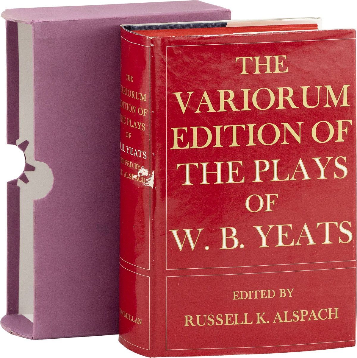"The present volume brings together for the first time all the work Yeats did on his plays. It records the revisions he made in the successive editions and printings of his plays, beginning with 'The Island of Statues' (1885) and ending with 'The Death of Cuchulain' (1939) (from front flap).