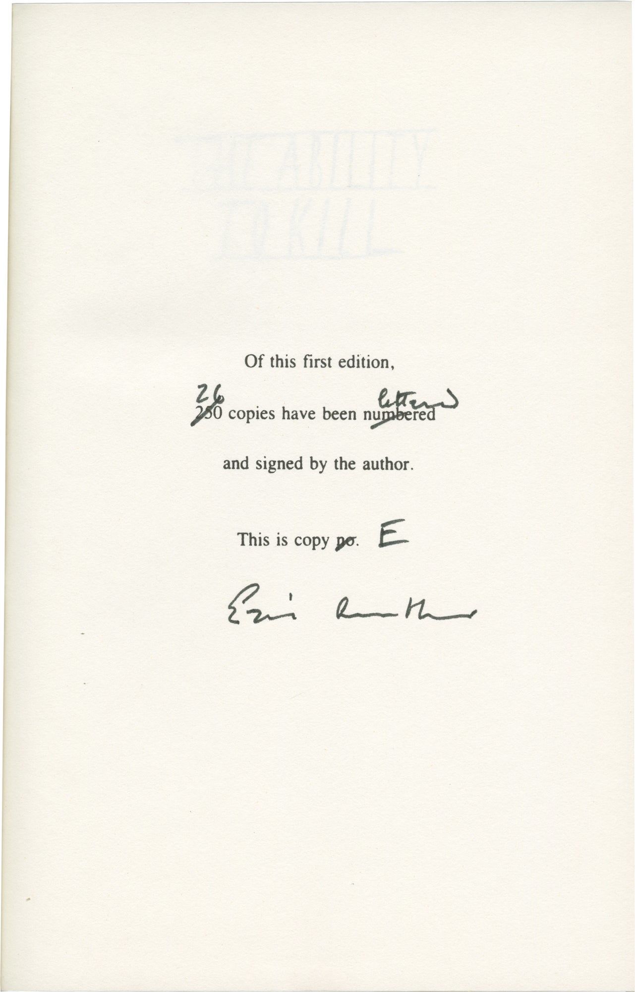 Ability to Kill (Limited Edition, one of 26 lettered copies signed by the author)