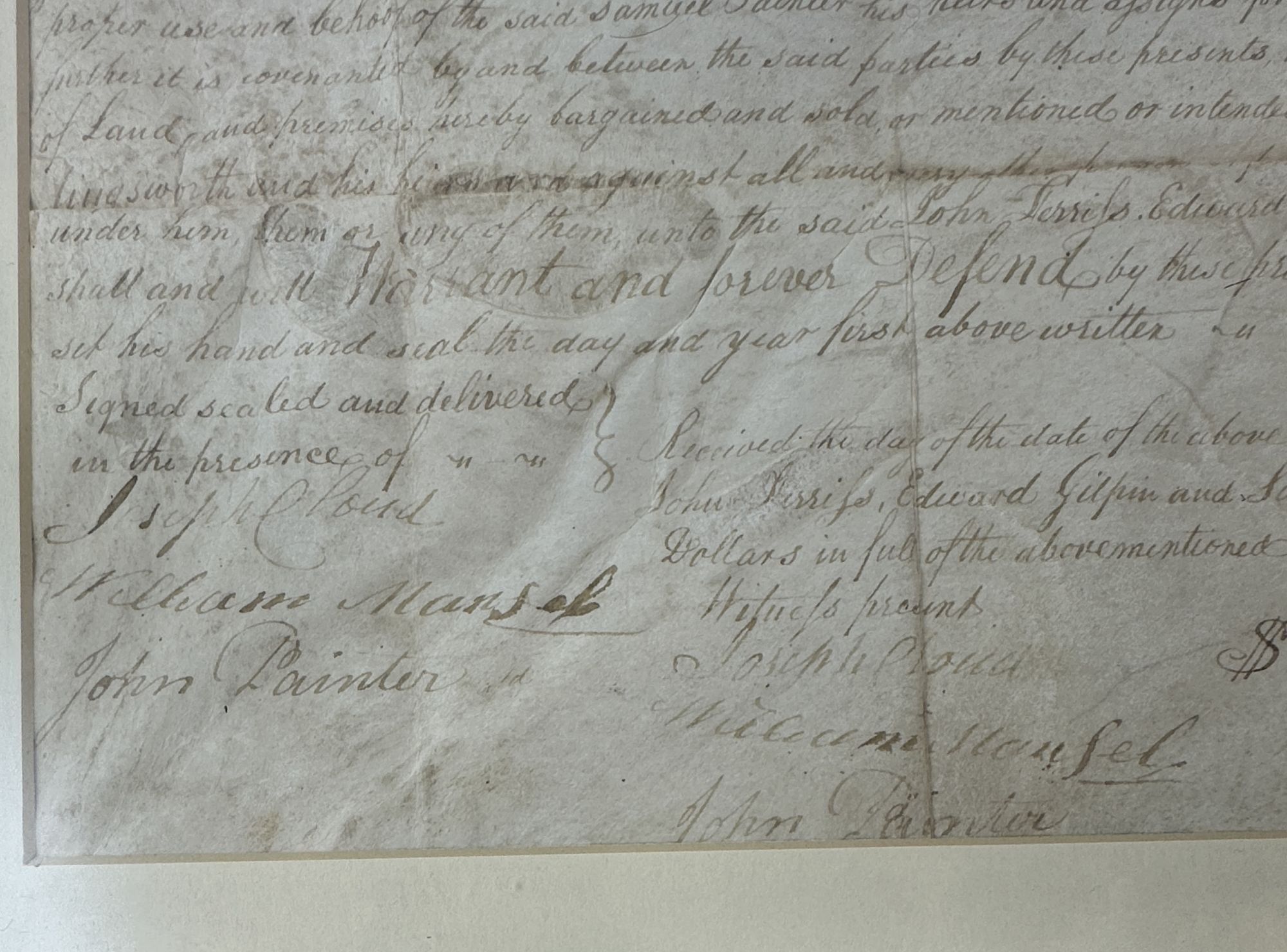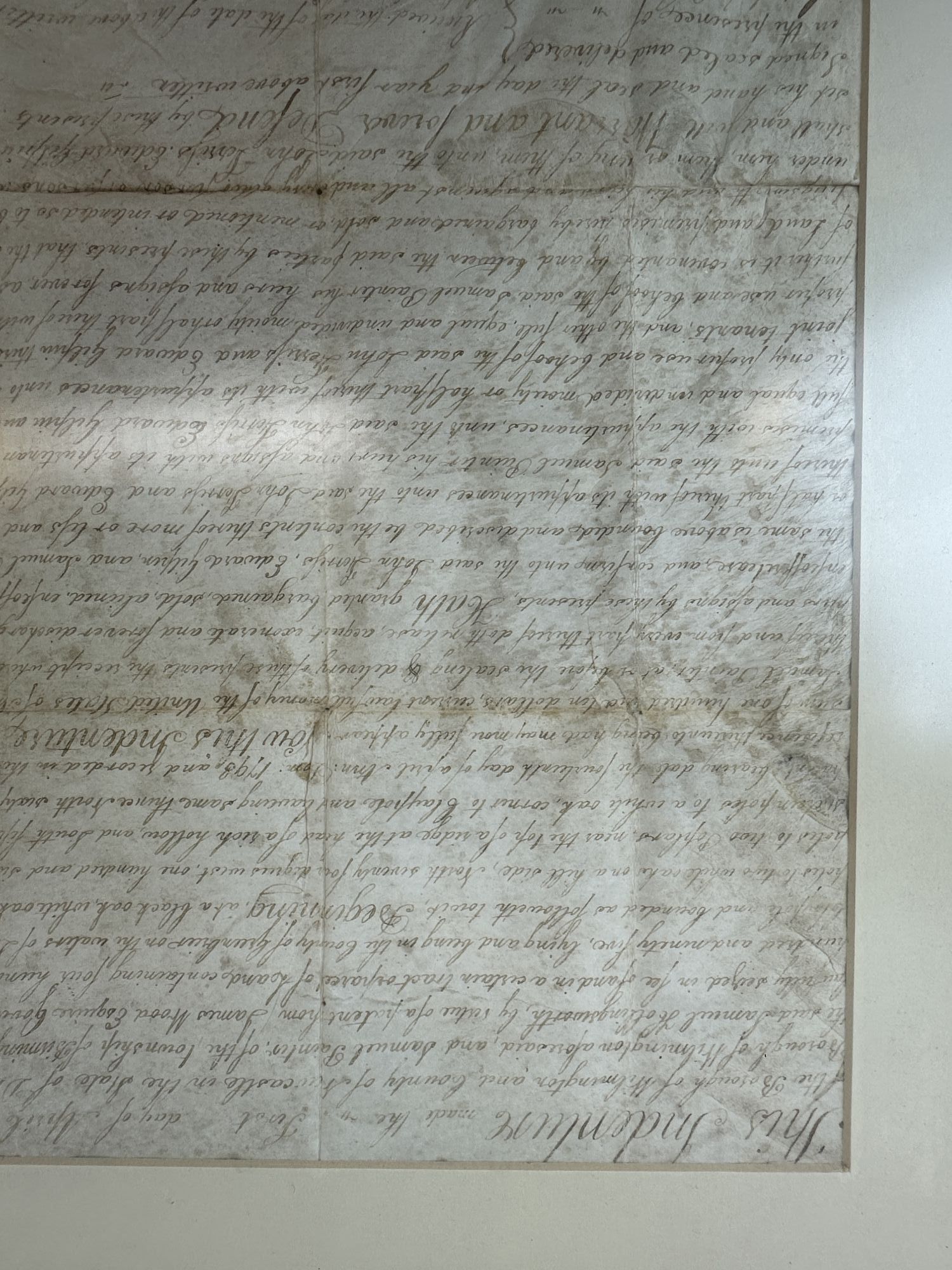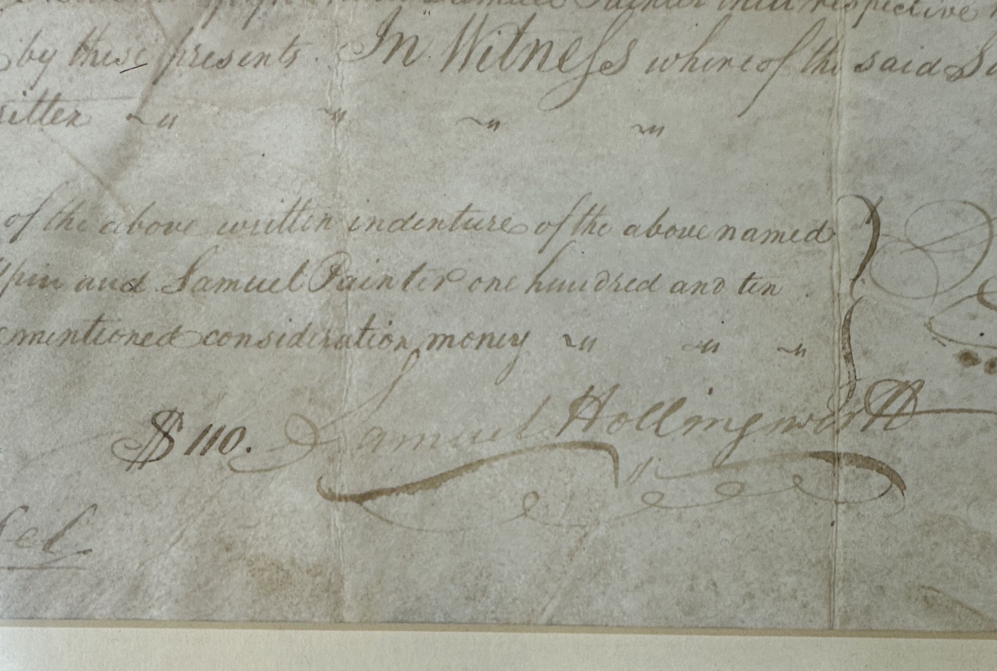 Delaware, 1800. In Good condition with age toning and scattered foxing. Signed by Samuel Hollingsworth. Frame has minor wear to the surface. Document measures 17 in. x 13.5 in. Frame measures 22 in. x 18.5 in. DM Consignment. Shelved at Rockville. 1400138. Special Collections.