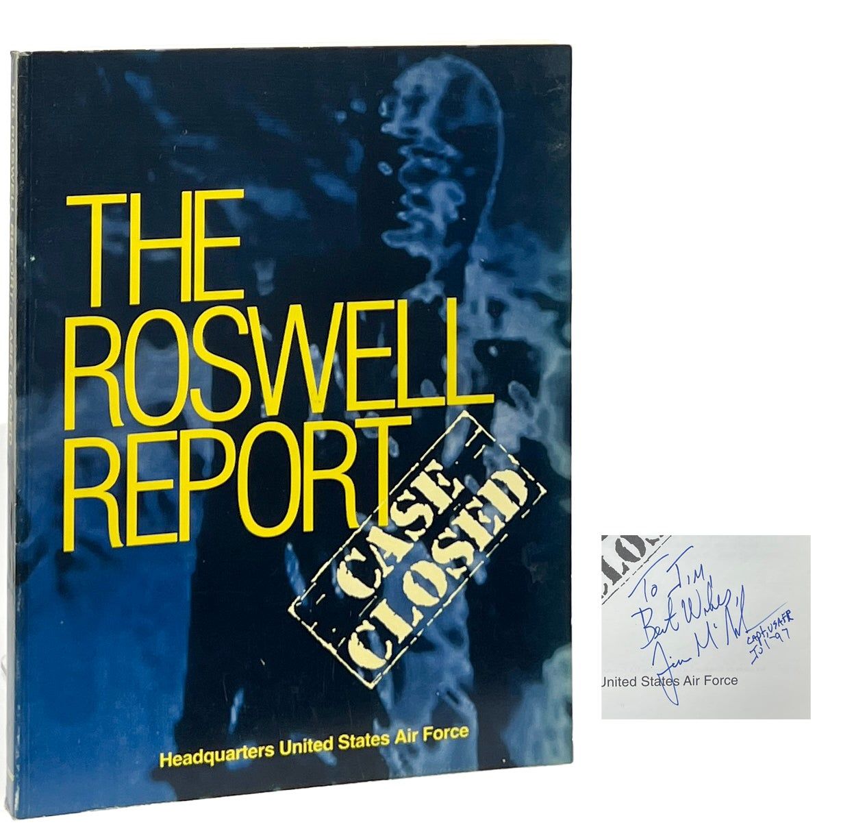 Washington DC: Headquarters United States Air Force, 1997. First Edition. Paperback. Good. Foreword by Sheila Widnall. Inscribed on the title page by McAndrew to Jim Moseley. Good. Wraps rubbed at the surface and edges. Square and firmly bound, some stains at the edges, clean internally. A follow-up to the 1994 work The Roswell Report: Fact vs. Fiction in the New Mexico Desert, here with additional material and analysis. From the collection of Tom Benson.